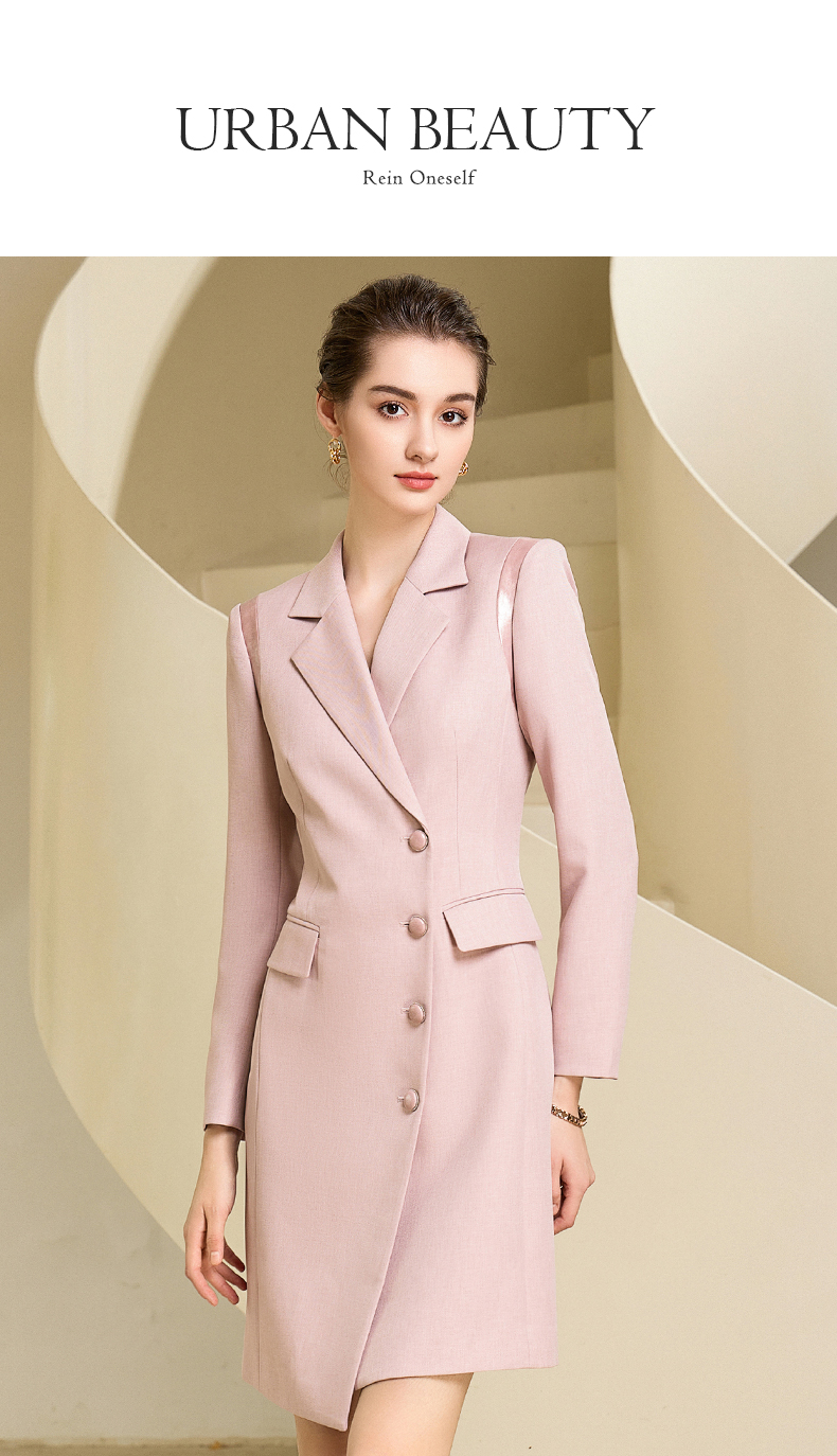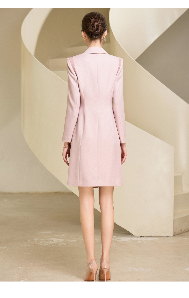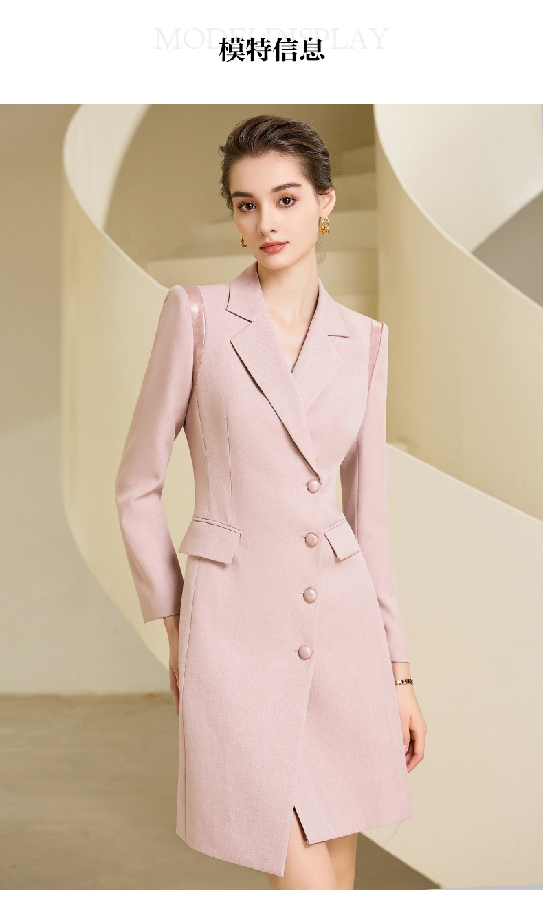 秋季新款高端时尚洋气粉色连衣裙长袖主持人职业装西装裙