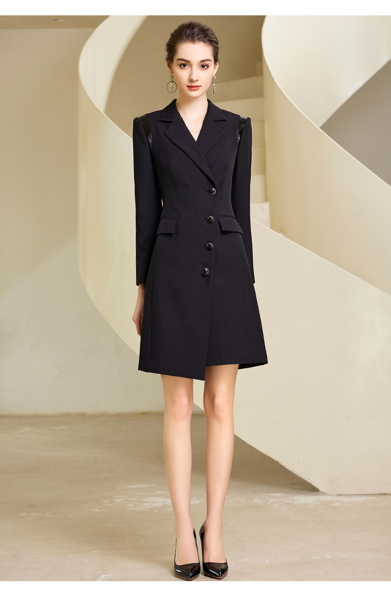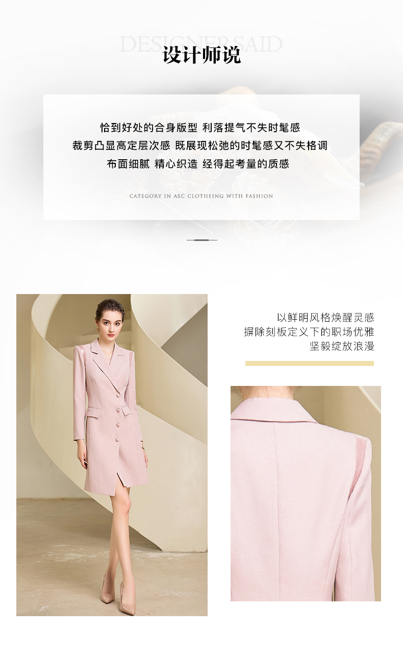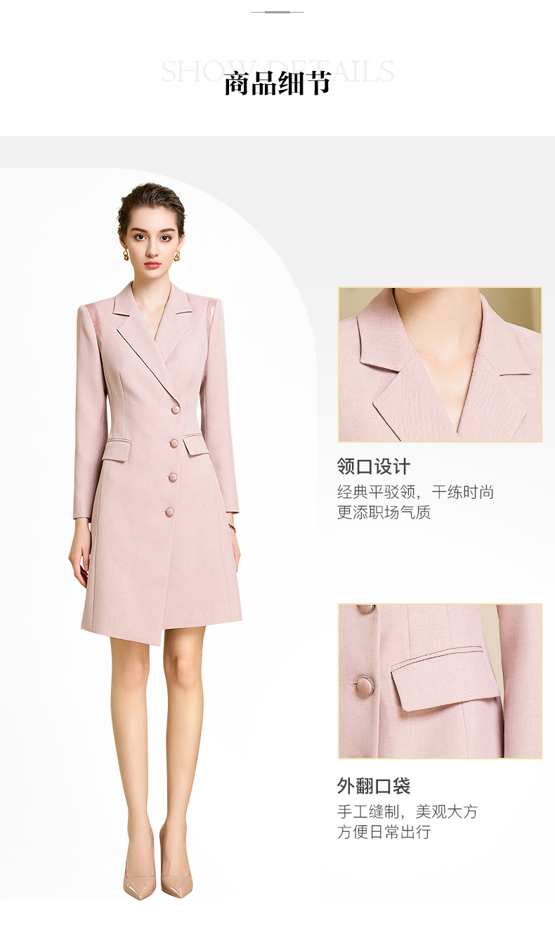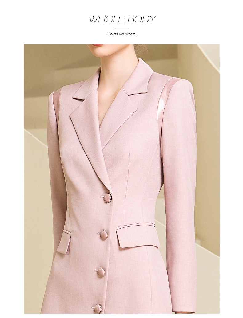 秋季新款高端时尚洋气粉色连衣裙长袖主持人职业装西装裙