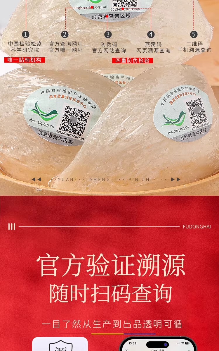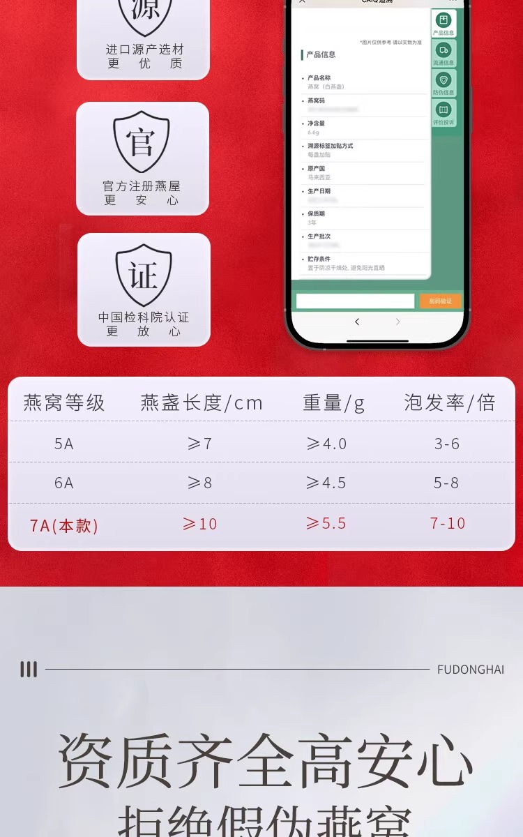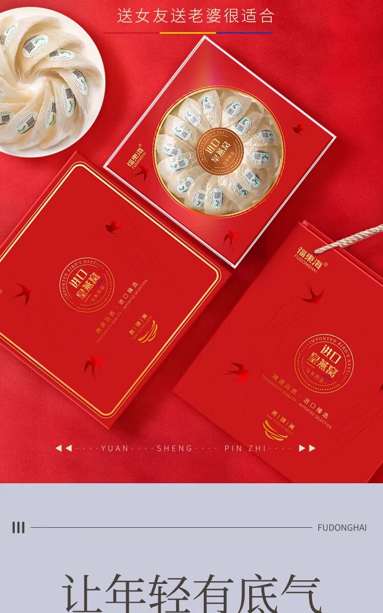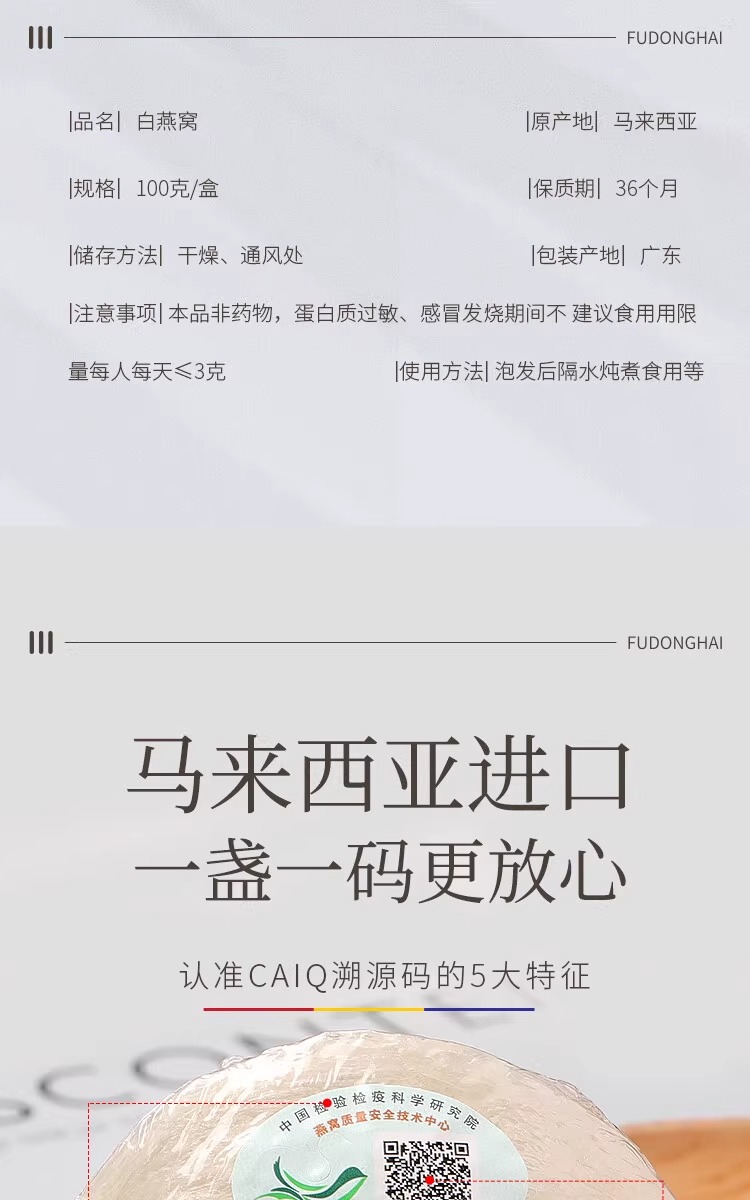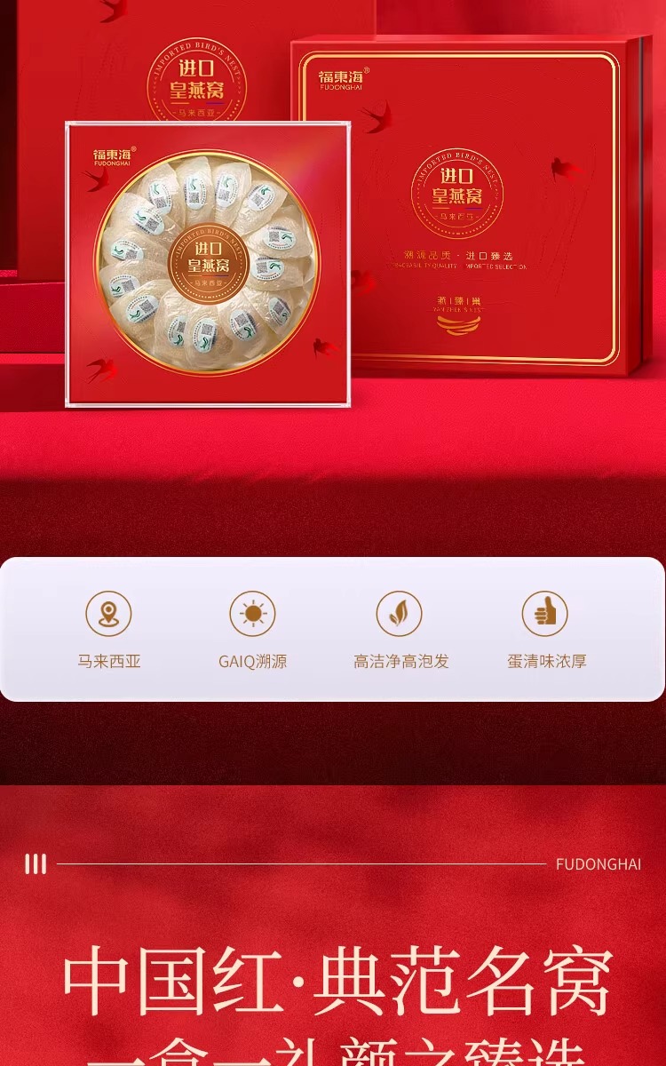 福东海 燕窝礼盒100g 进口可溯源干燕窝白燕盏 孕妇营养礼物送礼送长辈孕妇 马来西亚燕盏