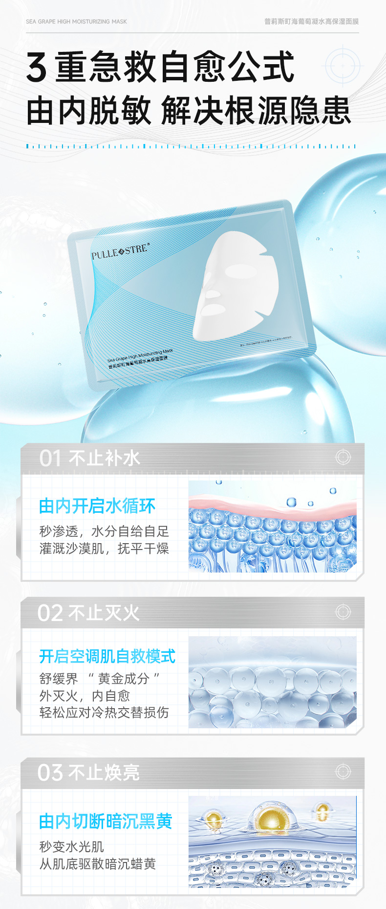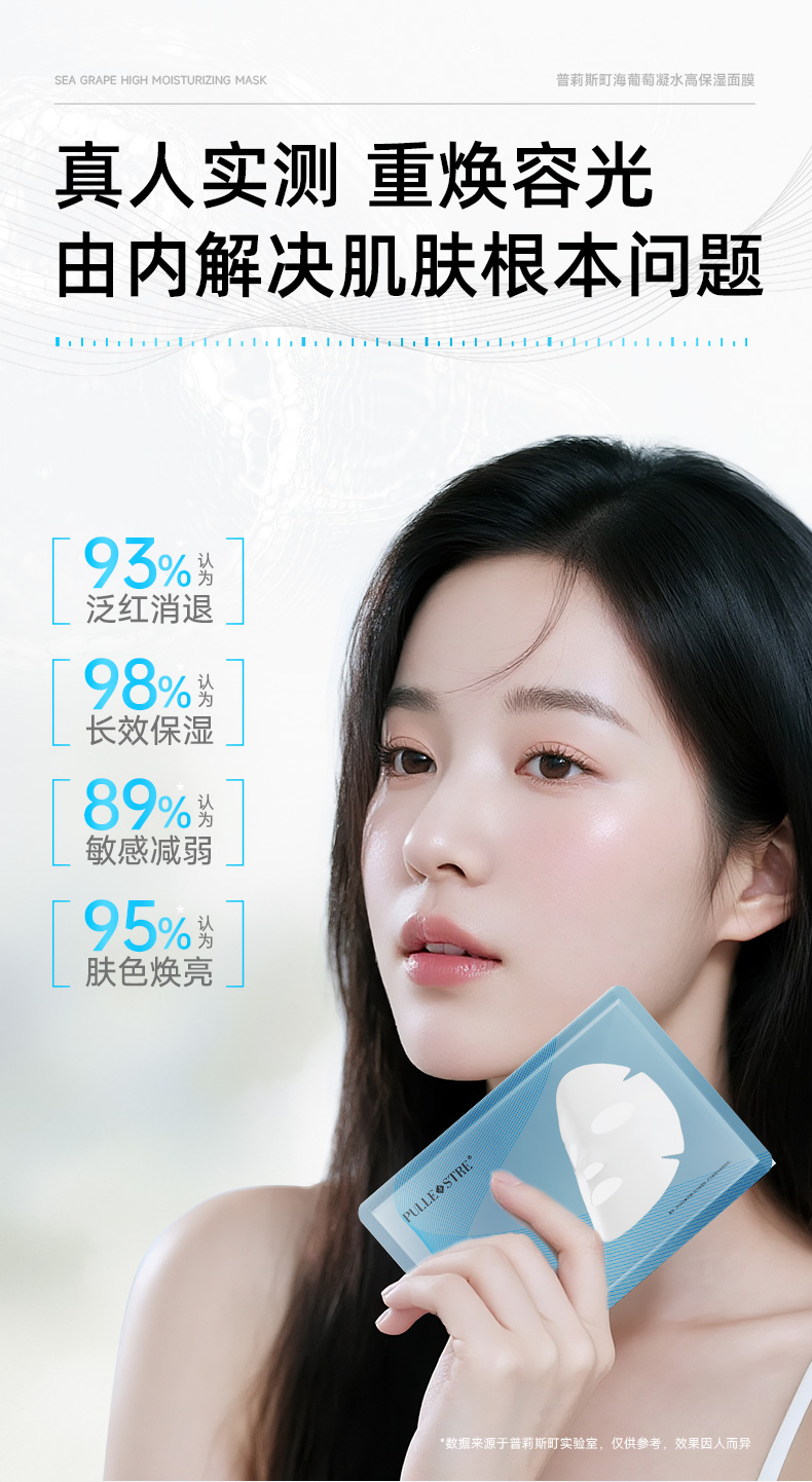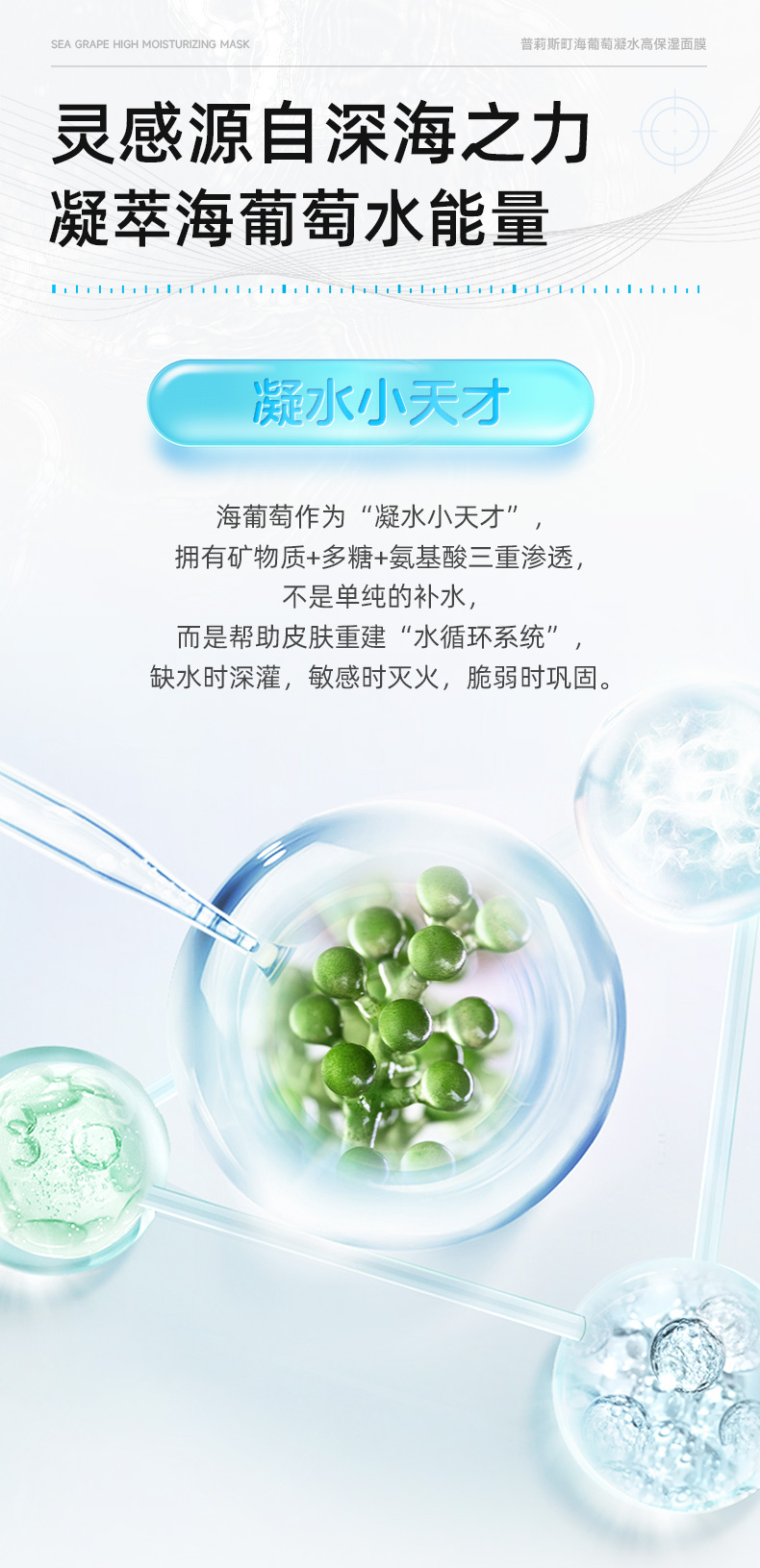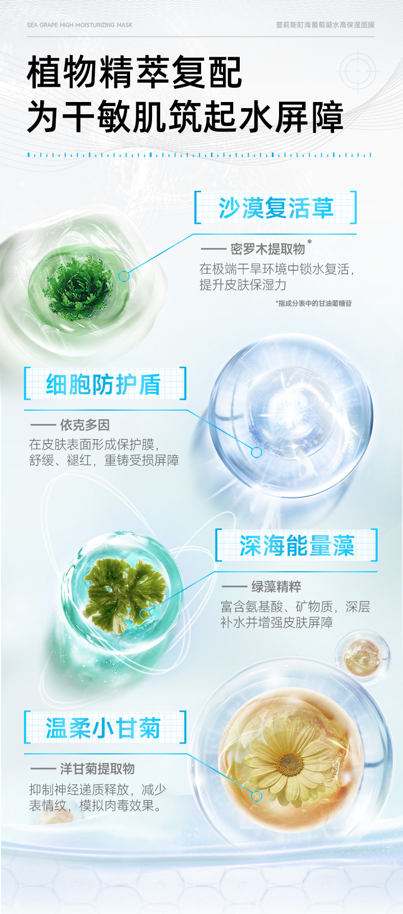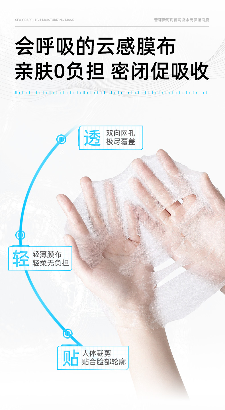 【普莉斯町丨海葡萄凝水高保湿面膜】不止表面 由内拔除敏感根源 急救修护舒缓补水保湿 海葡萄深海补水力筑起肌肤水屏障 由内而外水润健康