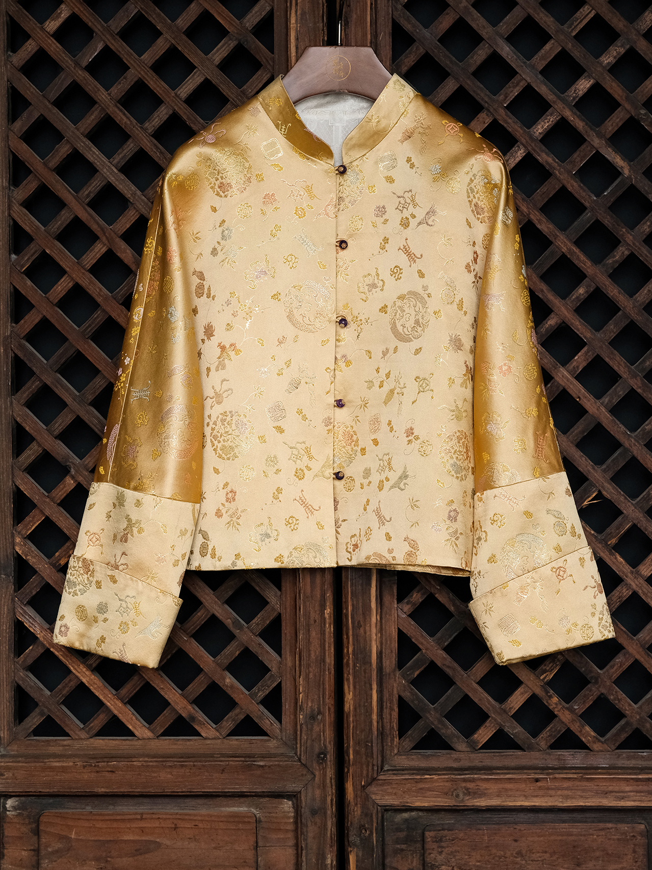 盛唐牡丹 |真丝提花梅兰竹菊外套/可正反两穿