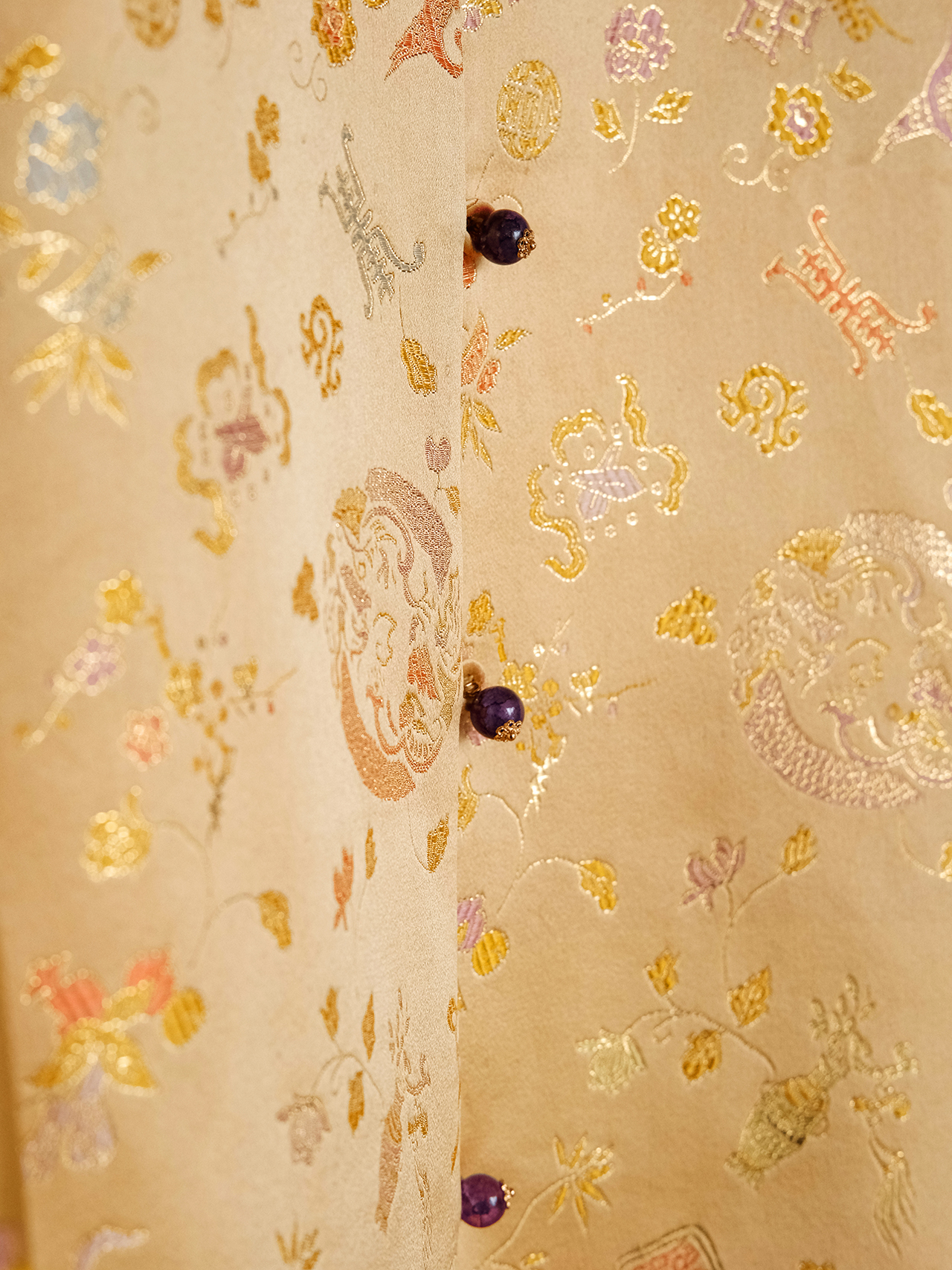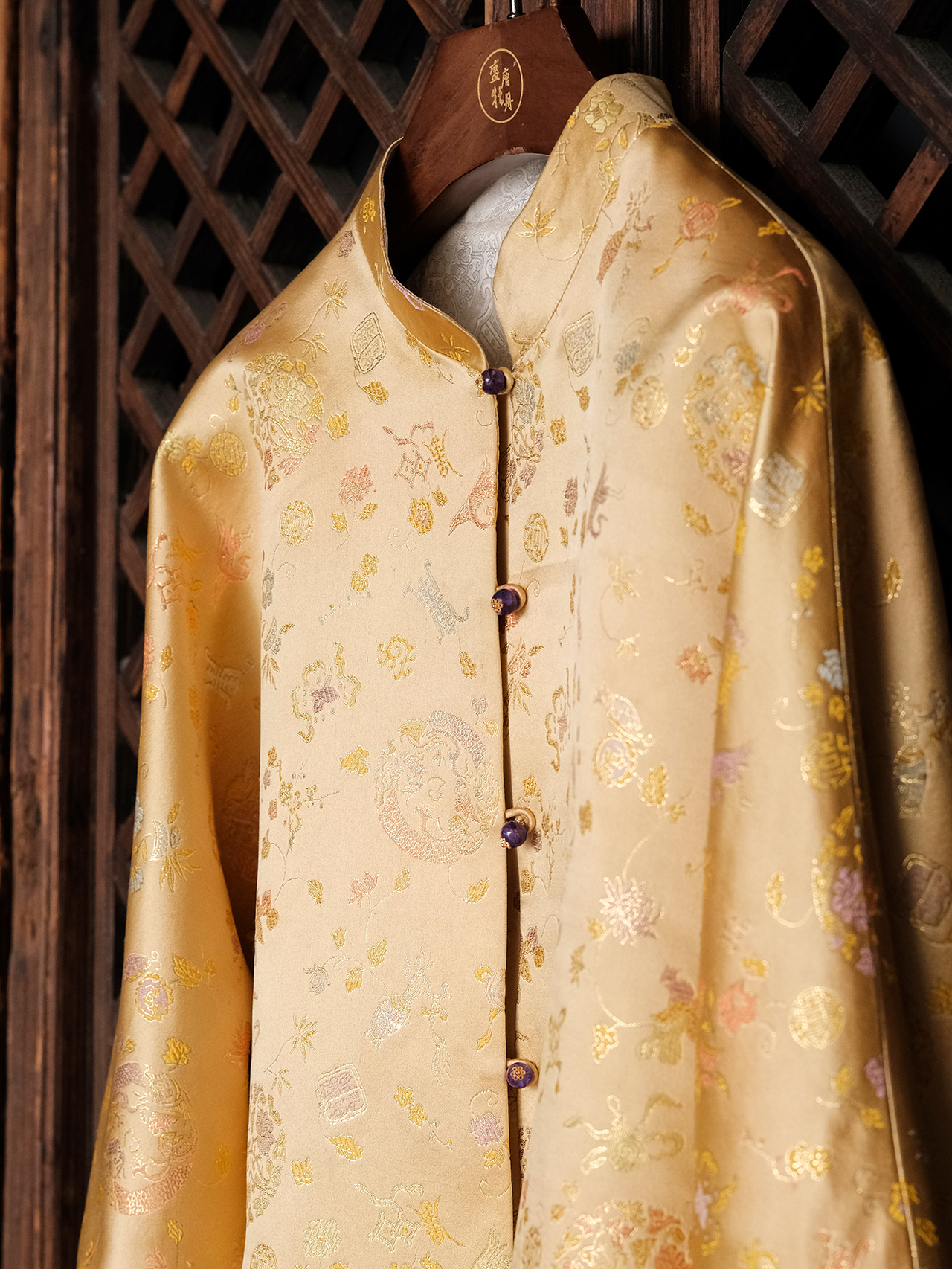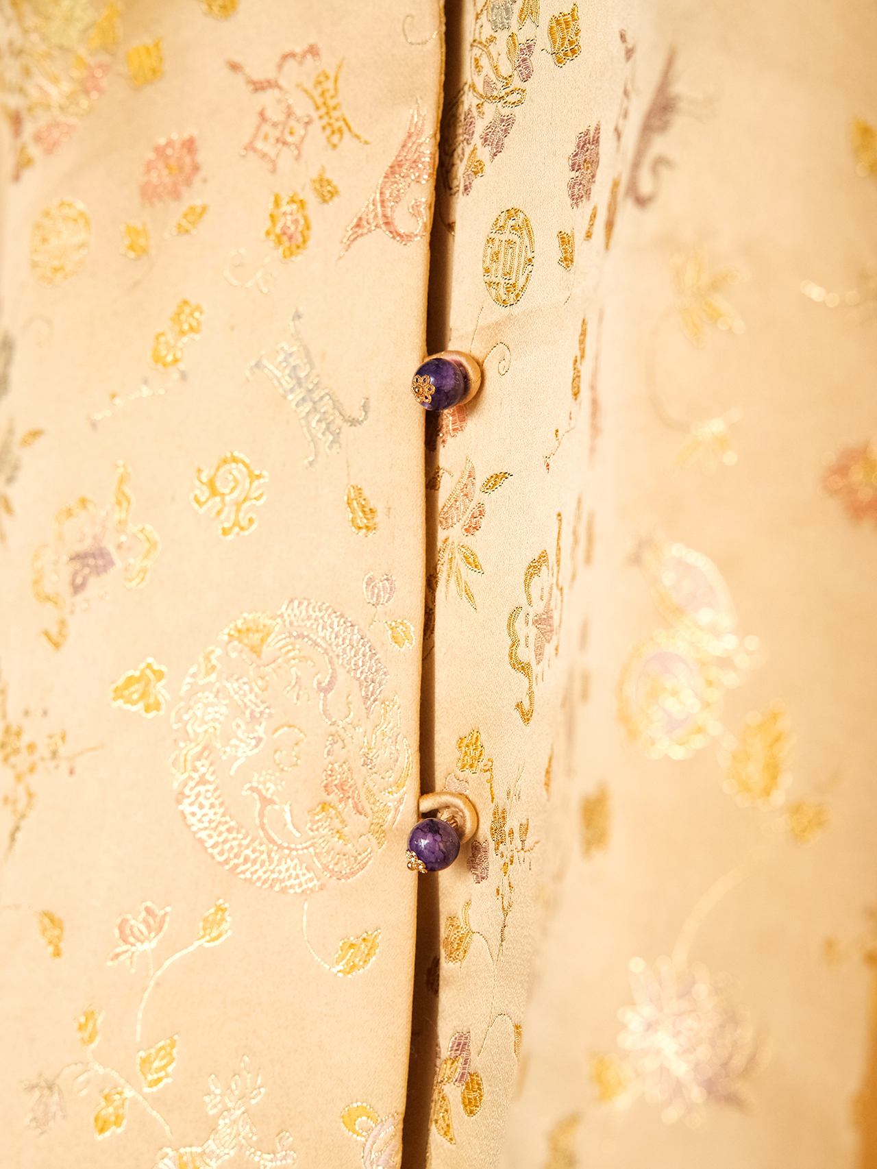 盛唐婧 |真丝宋锦钱币纹对襟马甲