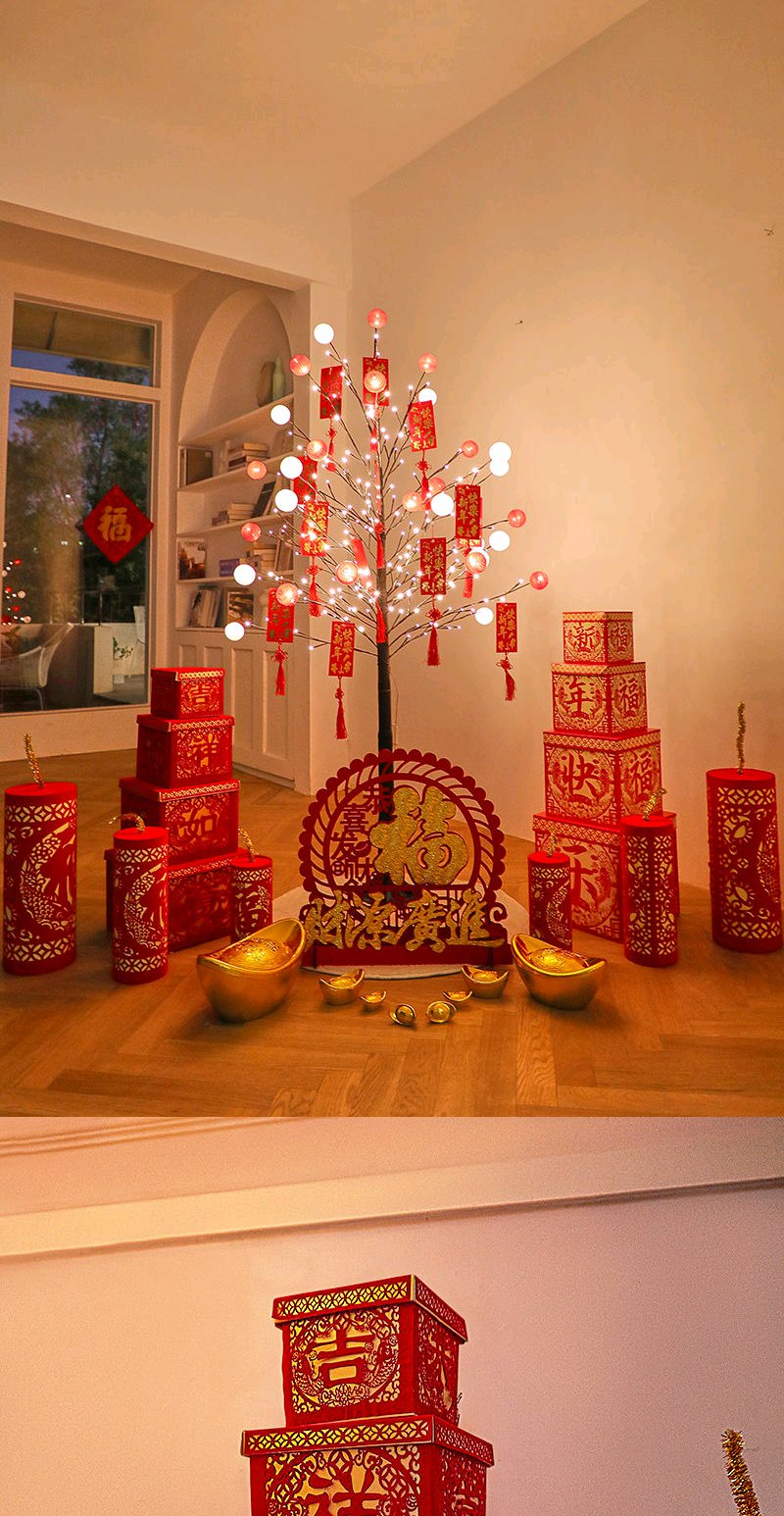 新年装饰品红包树灯商场店铺喜庆场景布置过年春节家用客厅摆件