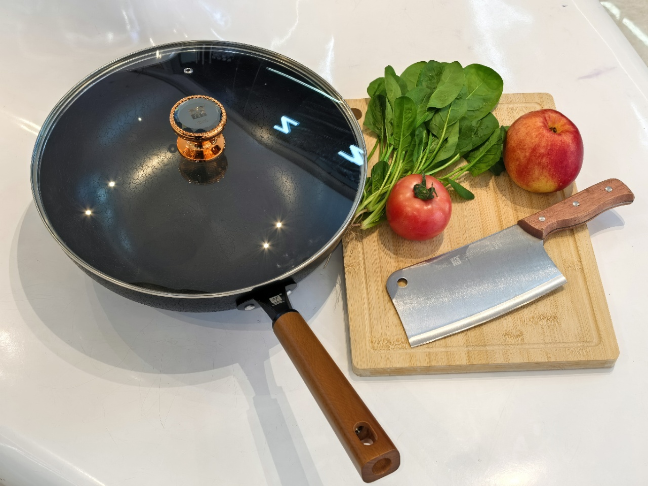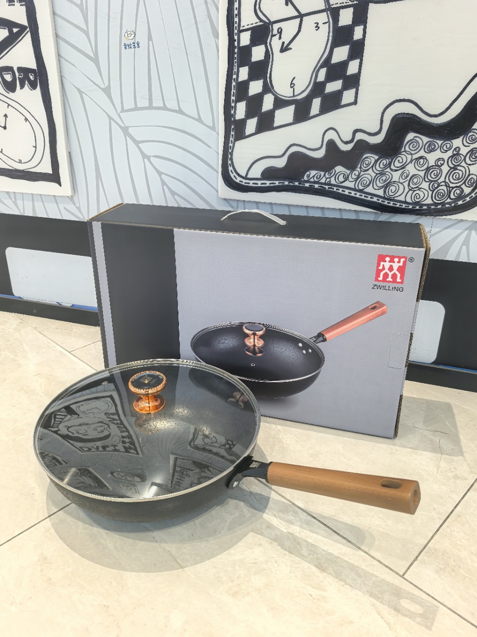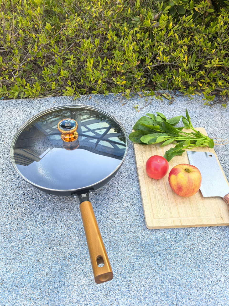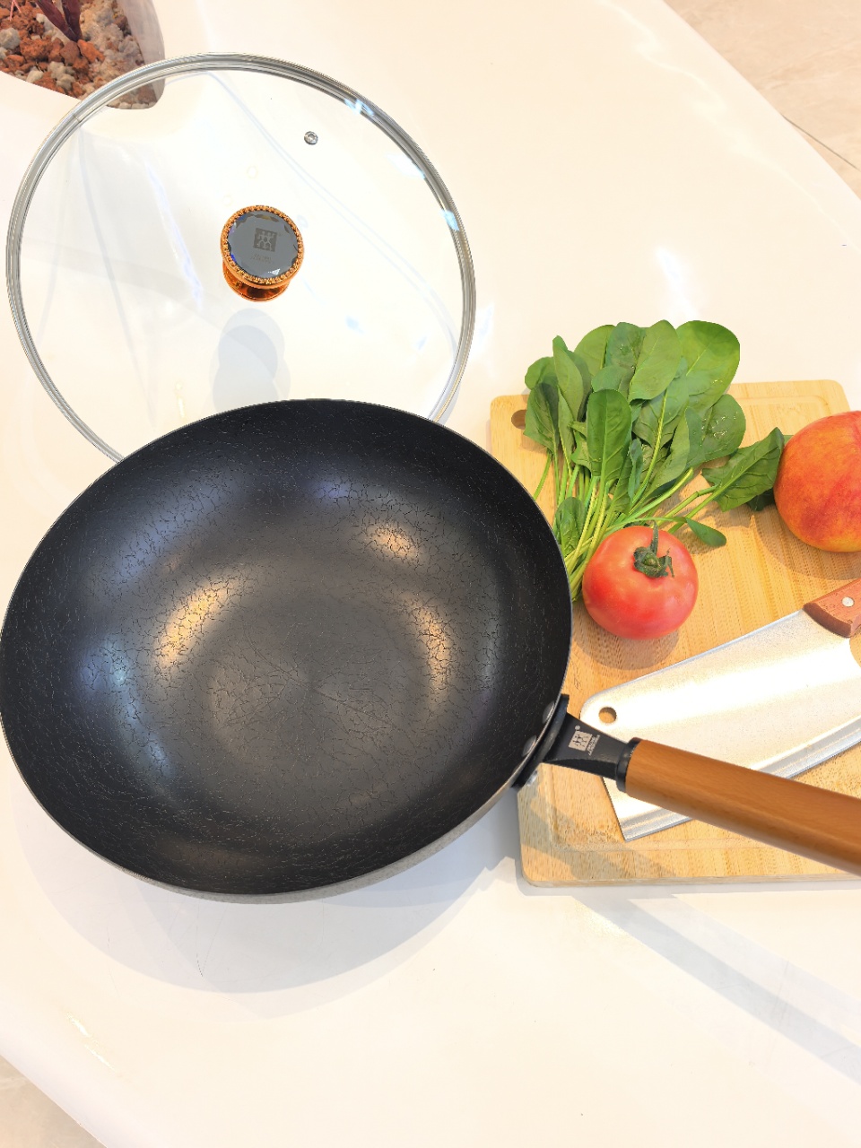 【产品特点】纯精铁打造,,健康无涂层,物理不粘锅免开锅,不挑灶具。易清洗,轻微油烟。精铁材质,一体成型。健康耐用不易糊!实木手柄。