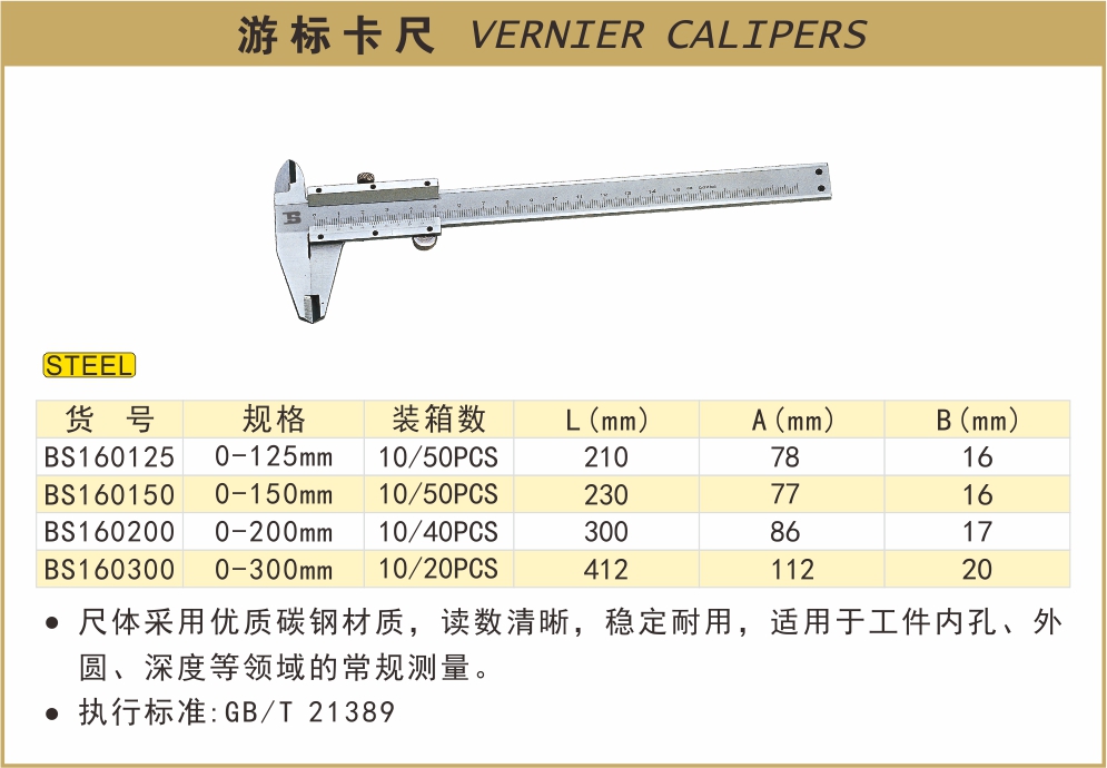 波斯游标卡尺 BS160125/BS160150/BS160200/BS160300