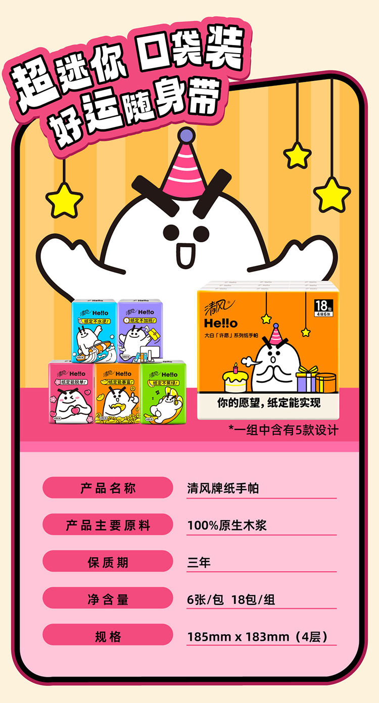 清风手帕纸hello4层6片18包迷你便捷式小包餐巾纸面巾纸巾随身装