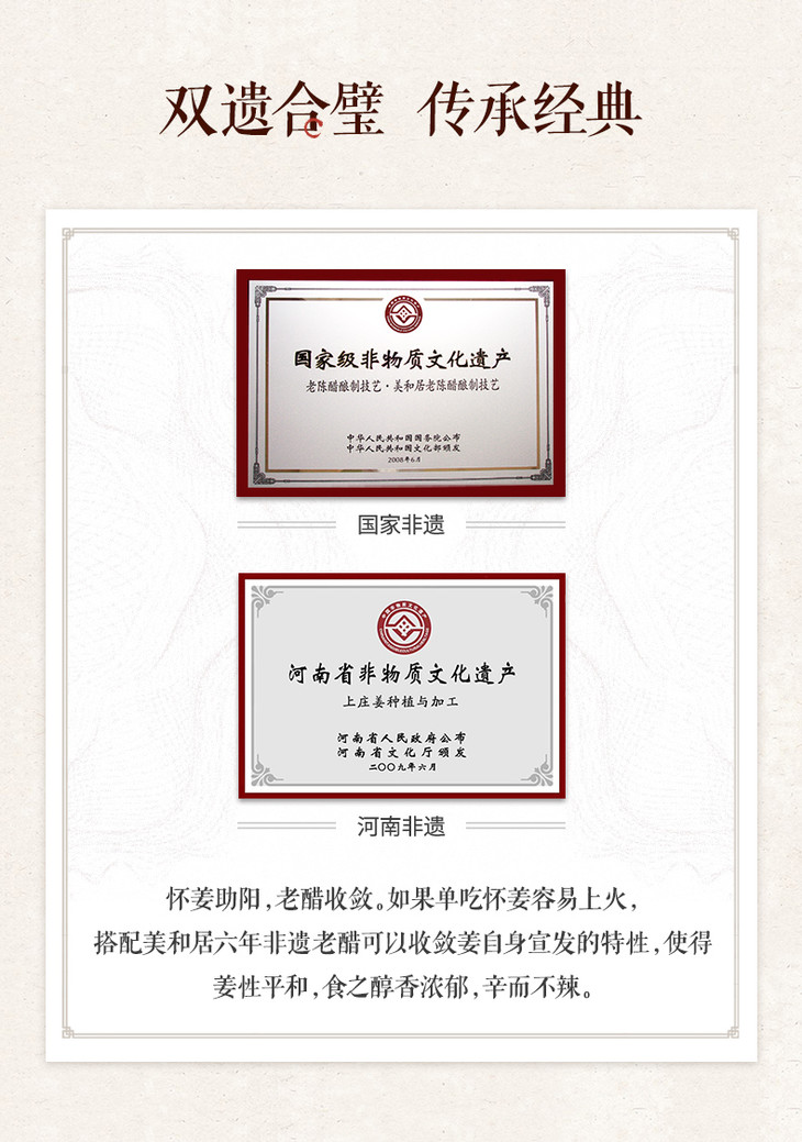 - 美和居始创于1368年,为山西老陈醋开创者,国家级非物质文化遗产酿制技艺,国家地理标志保护产品!