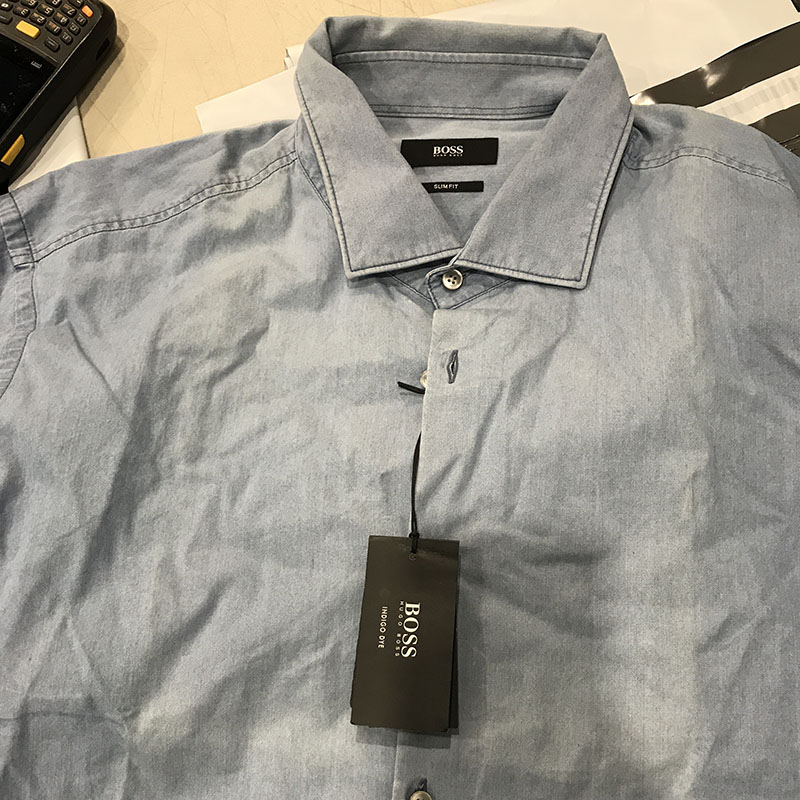 瑕疵 HUGO BOSS 男士春夏新款slim fit牛仔翻领休闲长袖衬衫