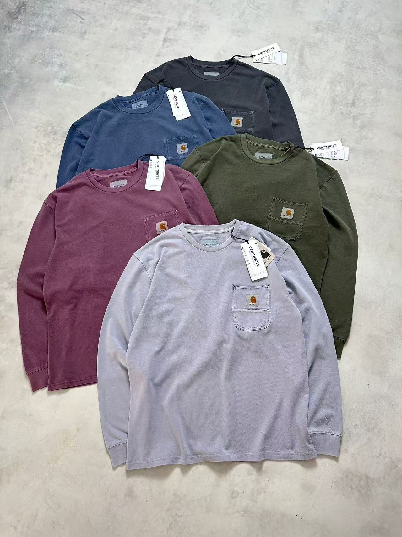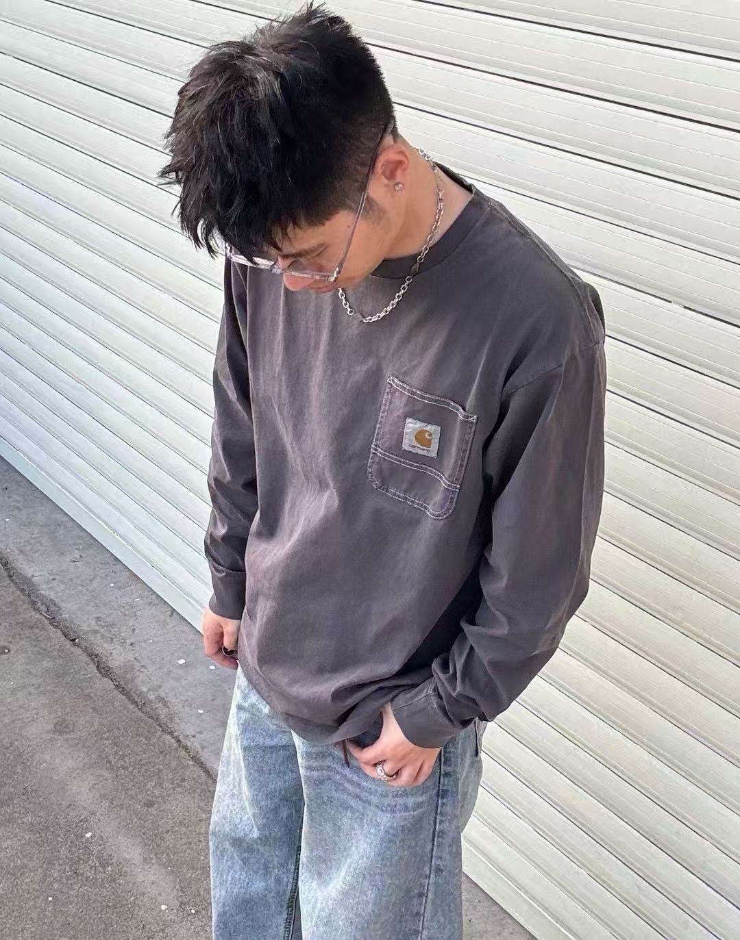【2fz1】情侣经典水洗口袋特染长袖T恤!!