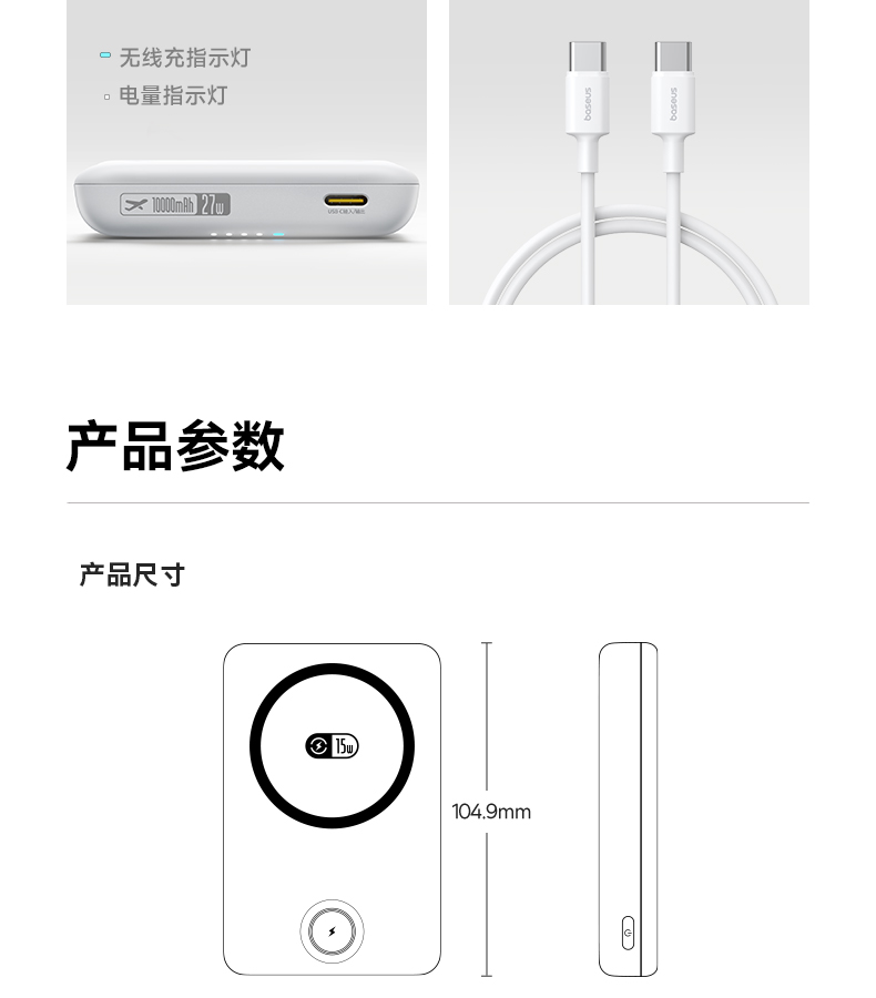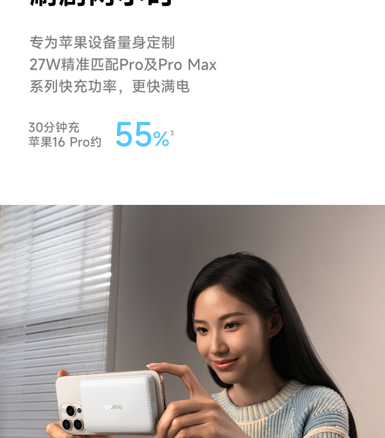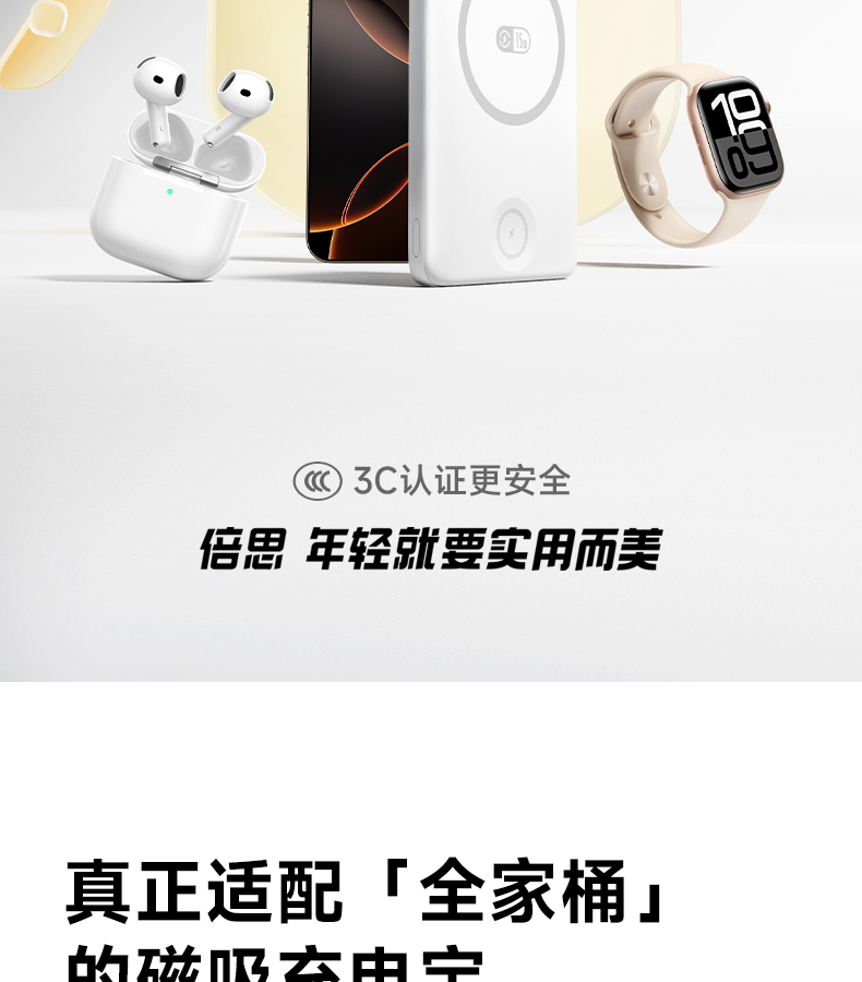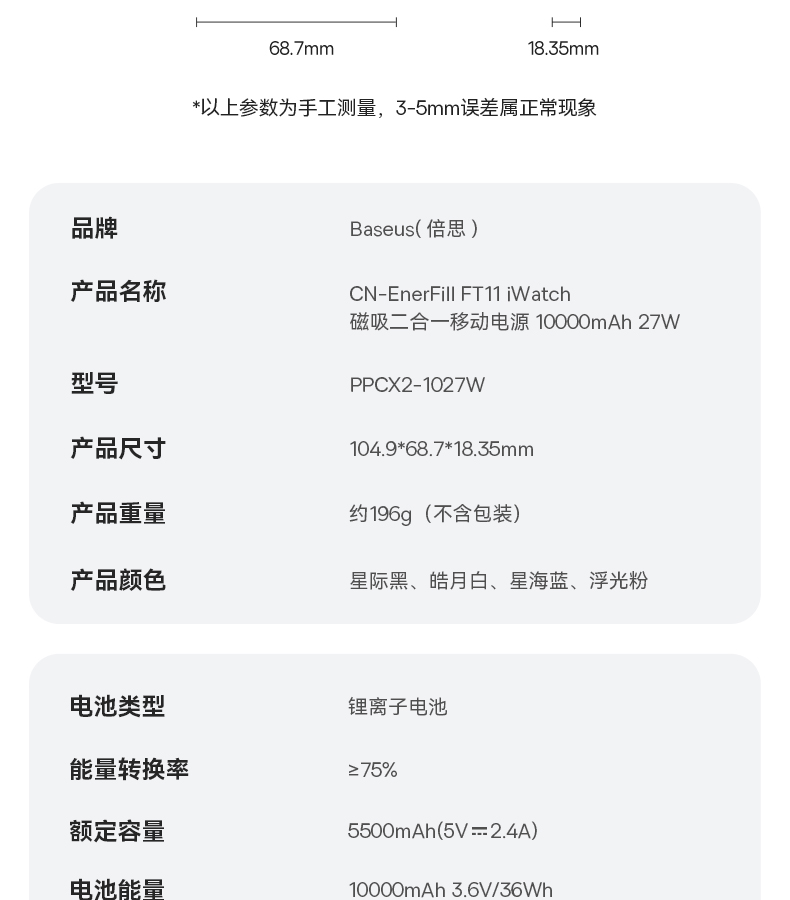 倍思 EnerFill FT11 iWatch磁吸二合一移动电源 10000mAh 27W