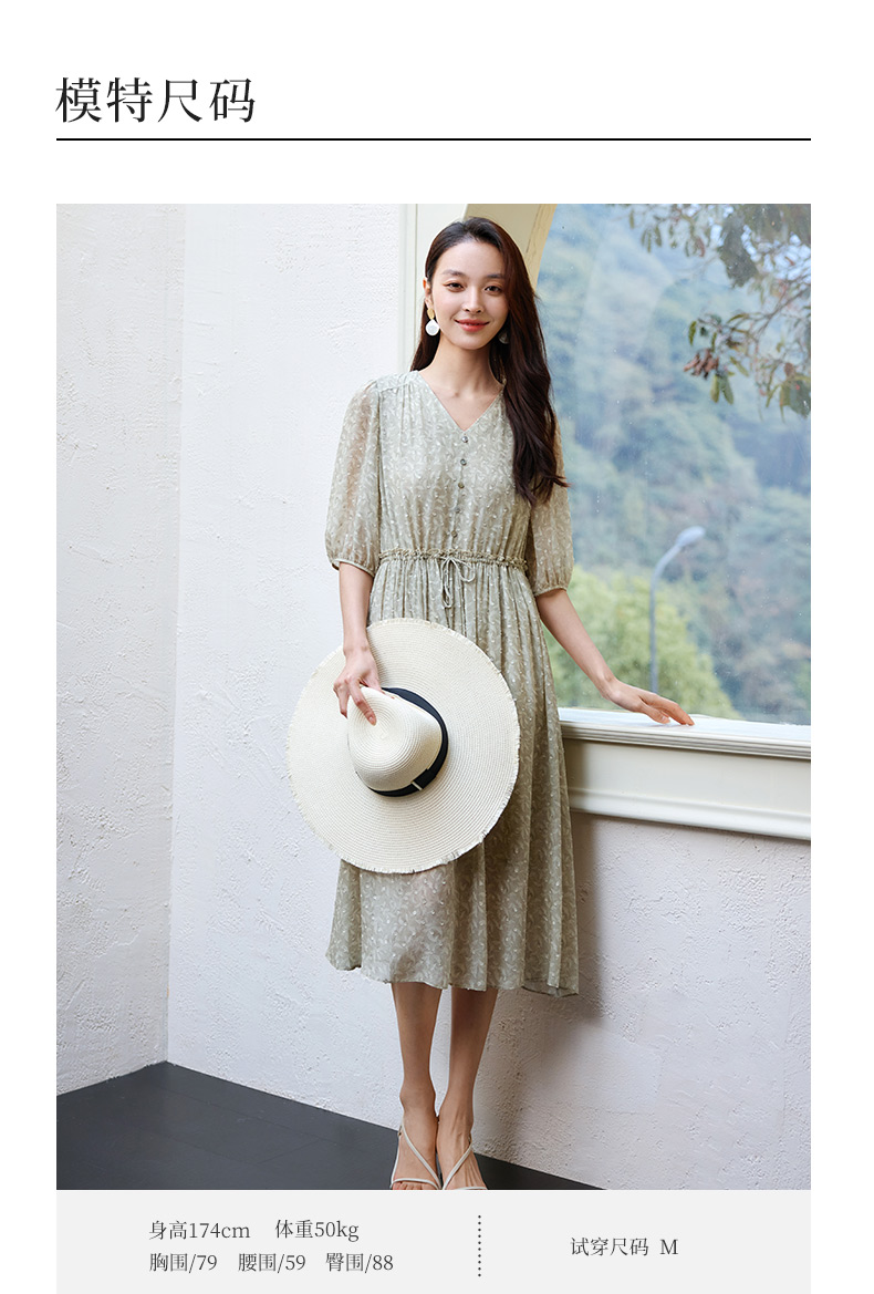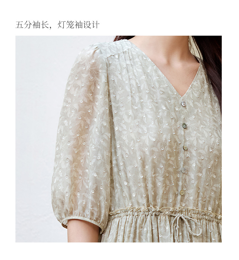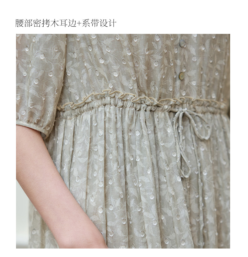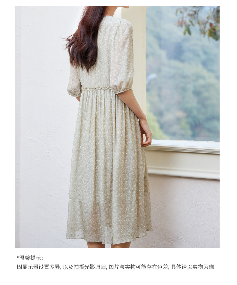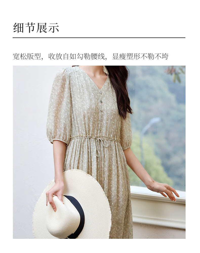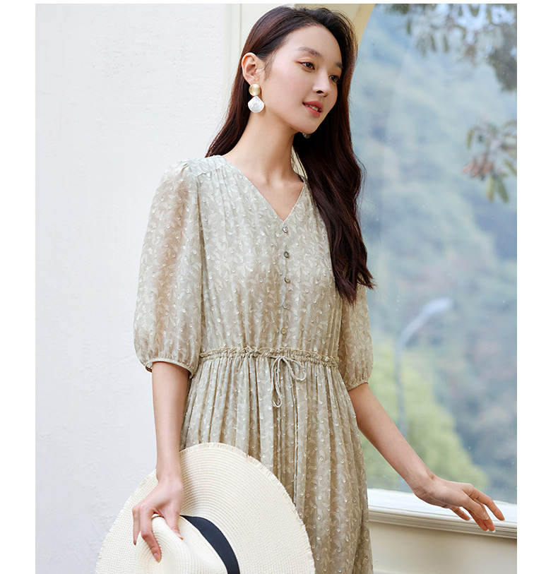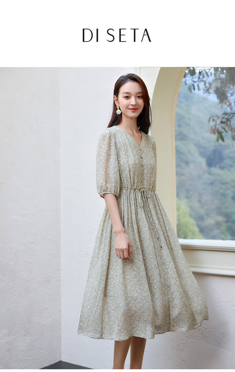 玳莎剪花真丝乔其连衣裙2025夏季新款精致气质印花桑蚕丝中袖长裙 FB35203