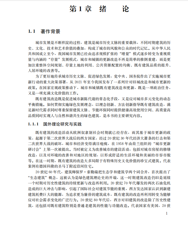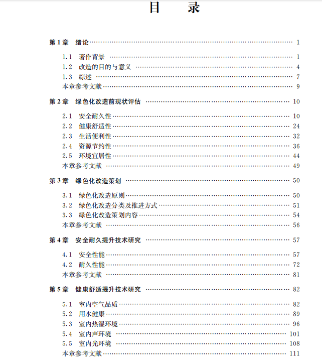 本书按照既有建筑绿色化改造的时间顺序,针对既有建筑绿色化改造的全生命周期活动进行论述。第1章梳理了“既有建筑”定义以及既有建筑绿色化改造面临的问题;第2章分别从安全耐久、健康舒适、生活便利、资源节约、环境宜居等方面给出了具体的评估内容及方法,以期对既有建筑现状进行精准的把控;第3章在第2章的基础上综合分析,提出针对既有建筑的切实可行的改造技术策略;第4~8章分别对安全耐久、健康舒适、生活便利、资源节约、环境宜居的具体提升技术措施进行了详细阐述,以期对一线设计人员提供技术上的导引;第9章对可再生能源利用技术进行了详细阐述,为既有建筑能源侧降碳提供方向;第10章阐述了绿色施工管理技术;第11章阐述了运行管理技术;第12章总结了既有建筑绿色化改造案例,为既有建筑绿色化改造的顺利实现提供参考。既有建筑绿色改造是绿色建筑发展的重要组成部分,是指对不满足绿色建筑标准的既有建筑实施的以节约能源资源、改善人居环境、提升使用功能为目标的维护、更新、加固等活动。本书首次对既有建筑绿色化改造提升按照安全耐久、健康舒适、生活便利、资源节约、环境宜居五大性能展开研究,对改造前评估、改造提升手段、施工技术以及运营管理技术分别进行详细阐述,并辅以案例,希望能为既有建筑绿色化改造工程的技术应用提供参考。