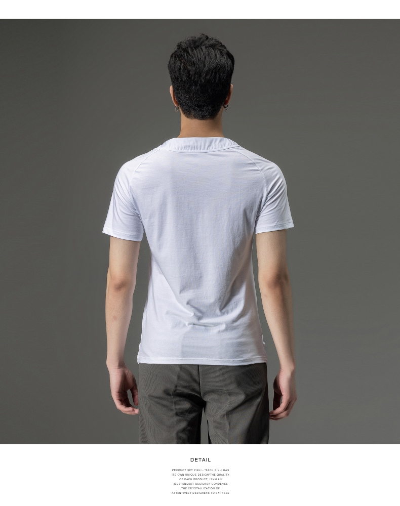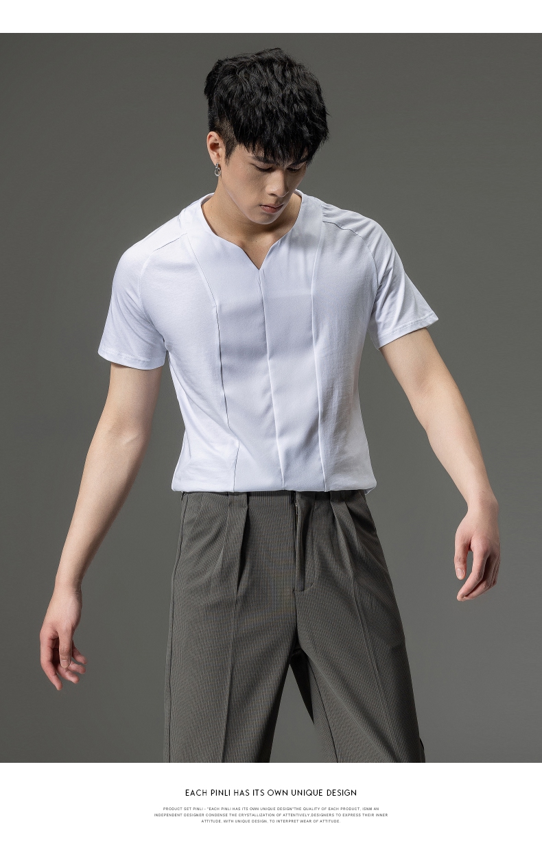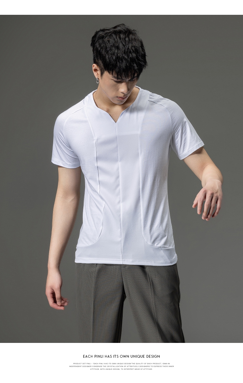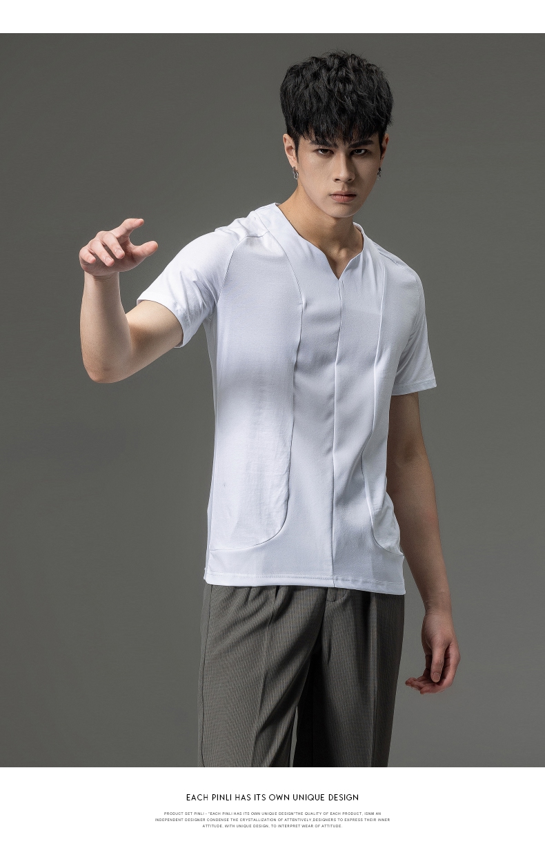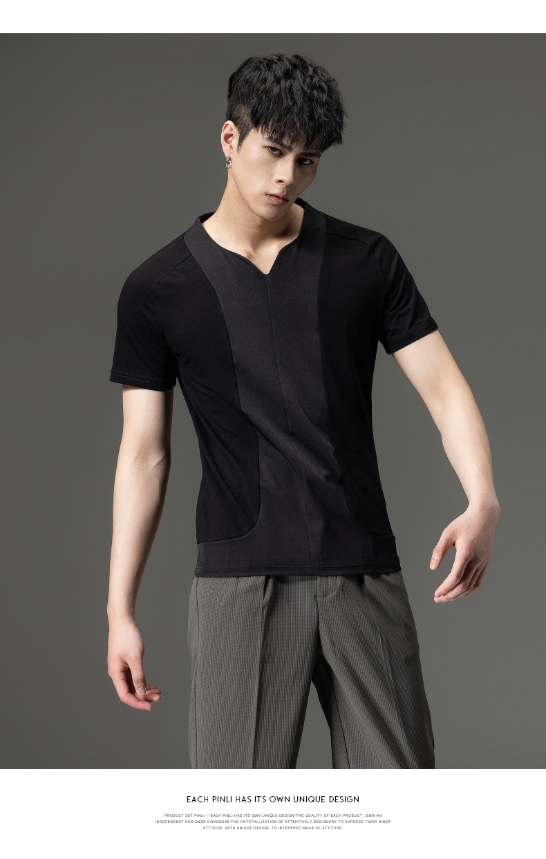 PINLI品立夏季新款男装修身V领上衣休闲短袖T恤纯色潮牌男士体恤B222111030