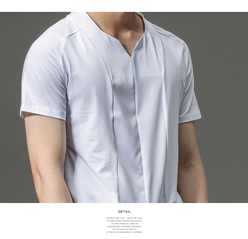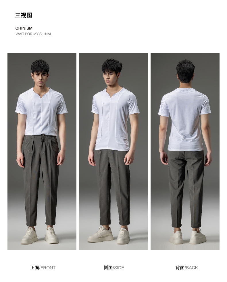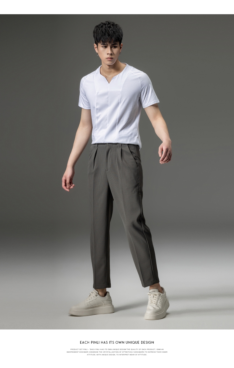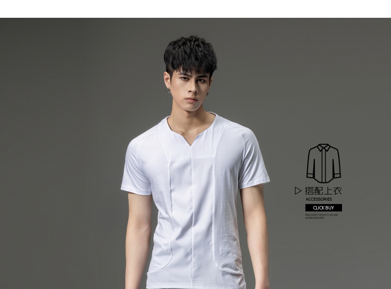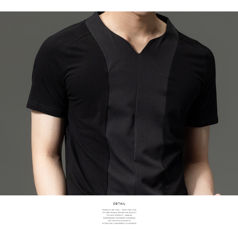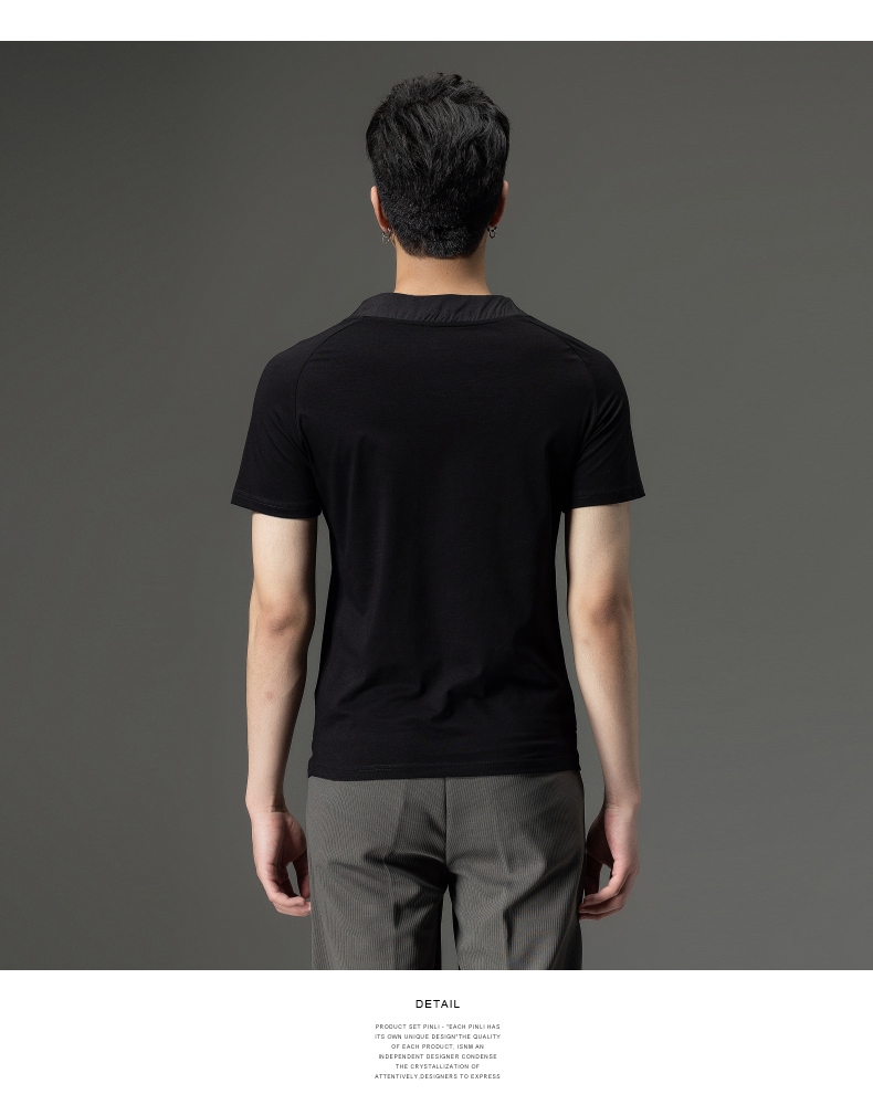 PINLI品立夏季新款男装修身V领上衣休闲短袖T恤纯色潮牌男士体恤B222111030