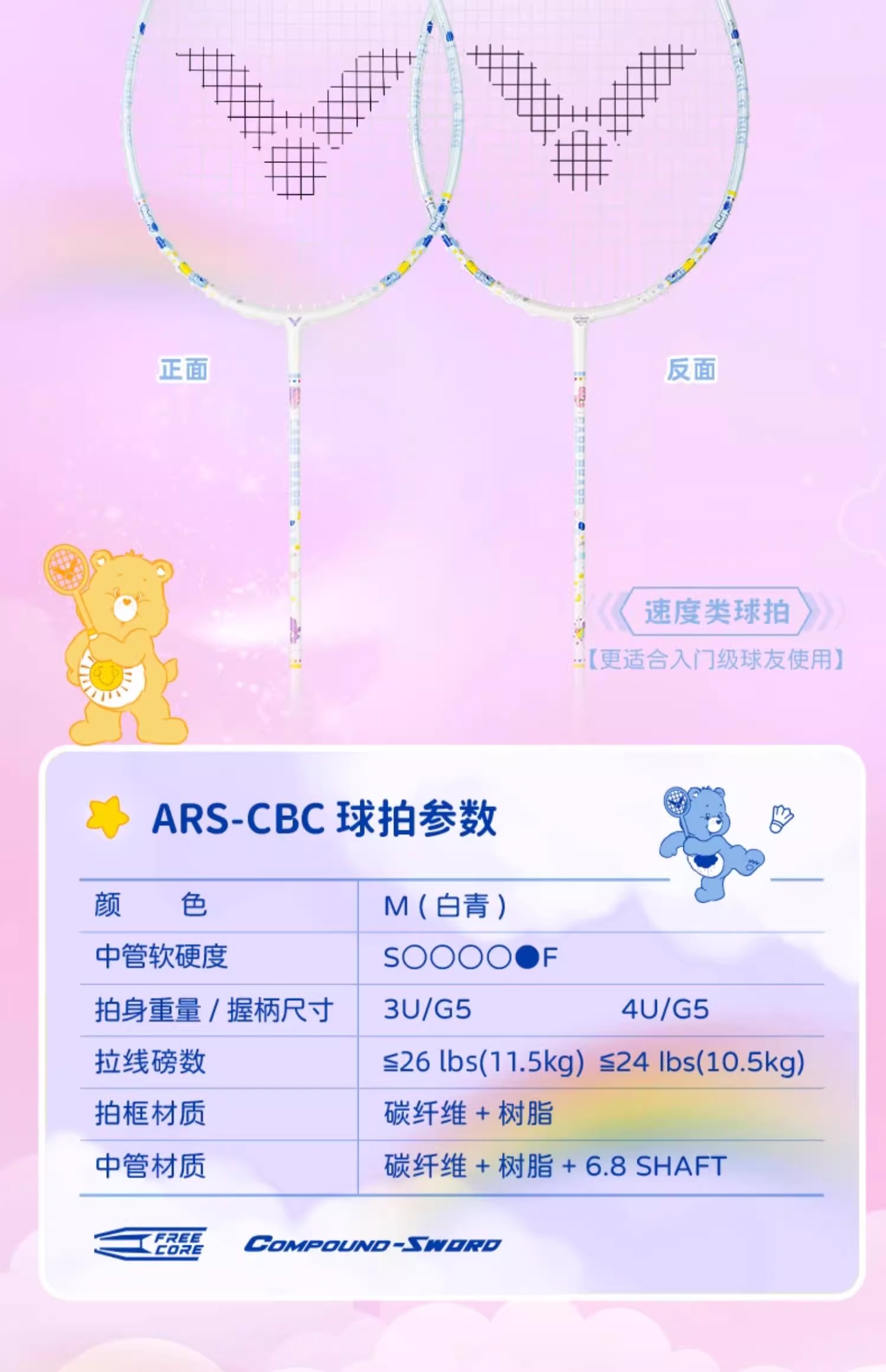 胜利威克多 爱心熊联名 羽毛球拍 ARS-CBC/M 神速系列