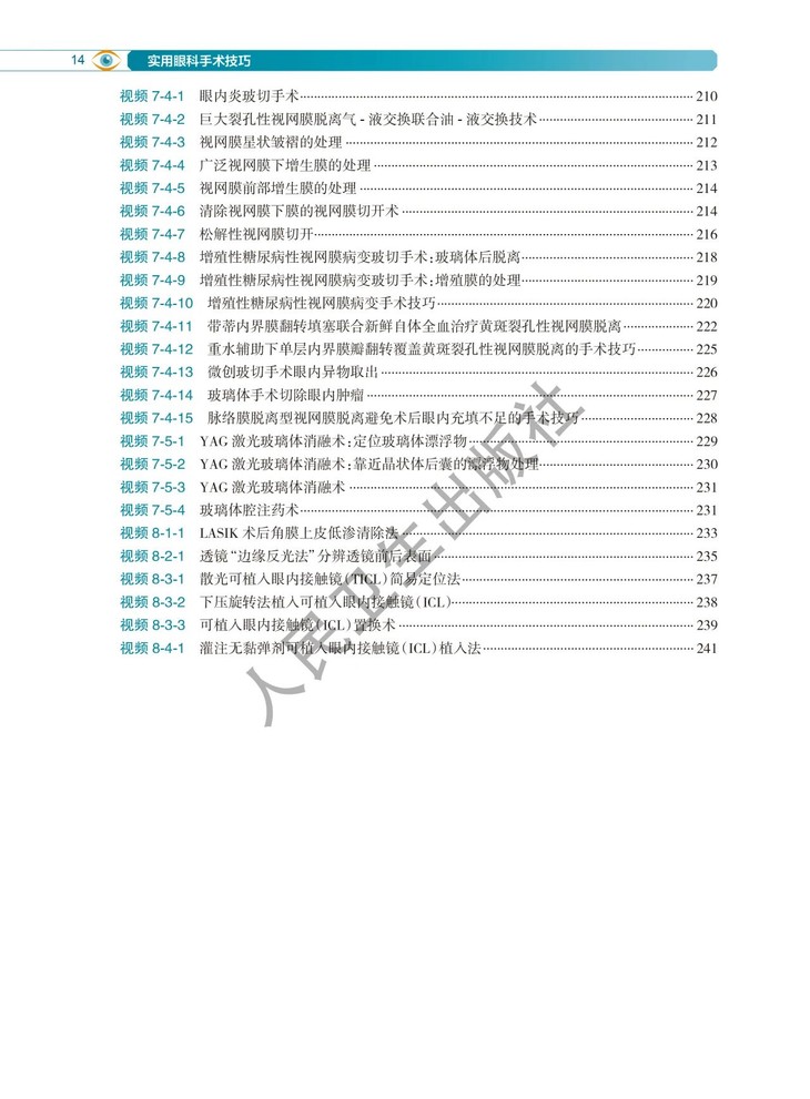 本书由爱尔眼科医院集团手术经验丰富的专家及部分爱尔集团以外的专家,历时四年多编写而成。全书共八章五十一节,收集了各种手术技巧及其具体步骤近一百八十个,手术录像一百三十余个,图片七百五十余幅。简明扼要,重点突出眼科手术某些关键步骤的技巧,而非某种疾病的完整手术过程。结合手术技巧,配以高清的手术录像和病例分享。相信会对广大眼科同道有所启发和帮助,为大家开辟一条提高手术水平的捷径。