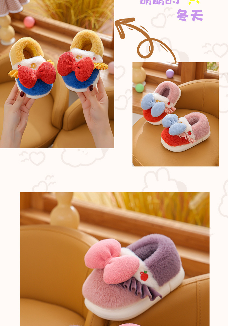 【可爱蝴蝶结包跟棉拖鞋】儿童棉鞋保暖加绒女童棉拖鞋包头宝宝毛毛鞋冬