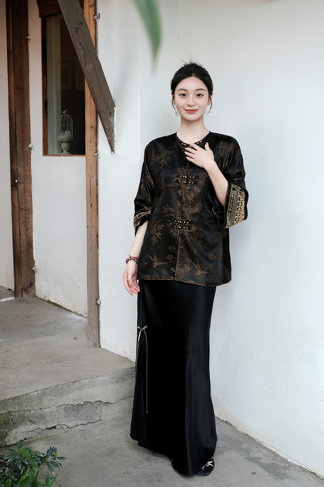 盛唐婧 |桑蚕丝提花修身美背-黑色