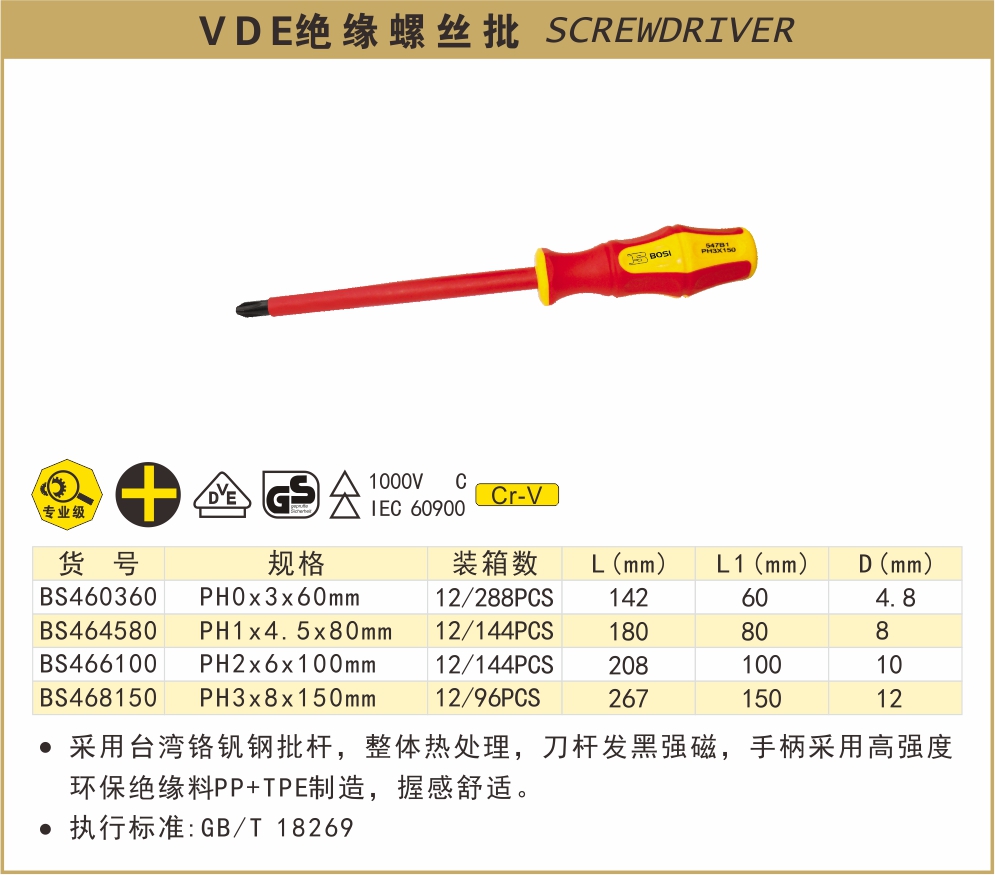 波斯VED绝缘螺丝批 BS460360/BS464580/BS466100/BS468150