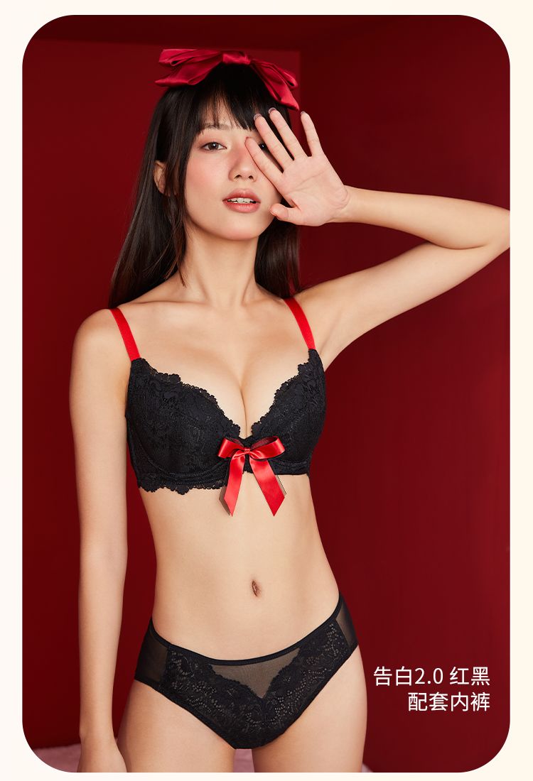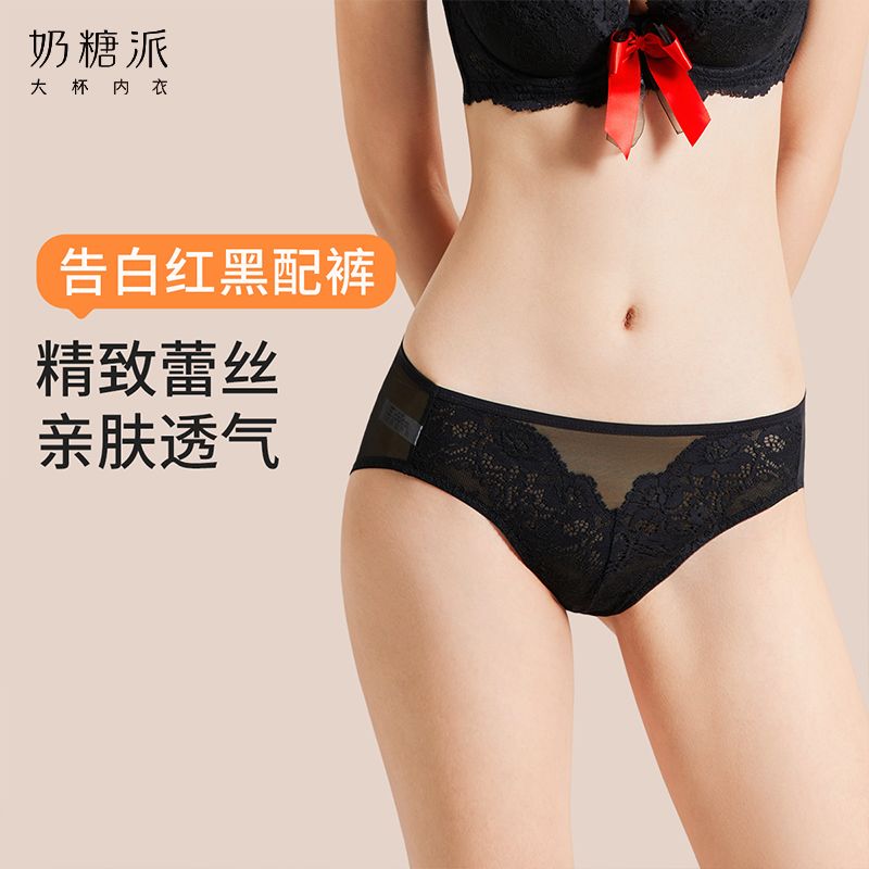 奶糖派告白红黑配套内裤亲肤舒适弹力大精致性感蕾丝三角裤女