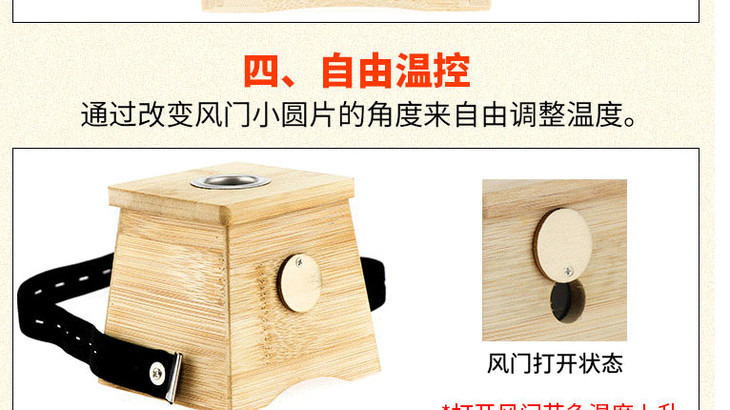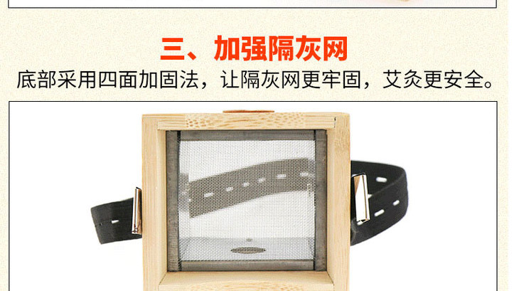 把竹制艾灸盒,往身体的穴位上一绑就可以开始艾灸了;