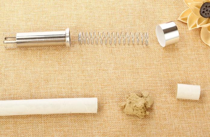 三:使用完后,拧开铝盖,取出弹簧,如需清洗时,建议将送艾器放入高温水中煮3分钟,趁热取出用擦布擦拭,擦拭干净后光亮如新不生锈。