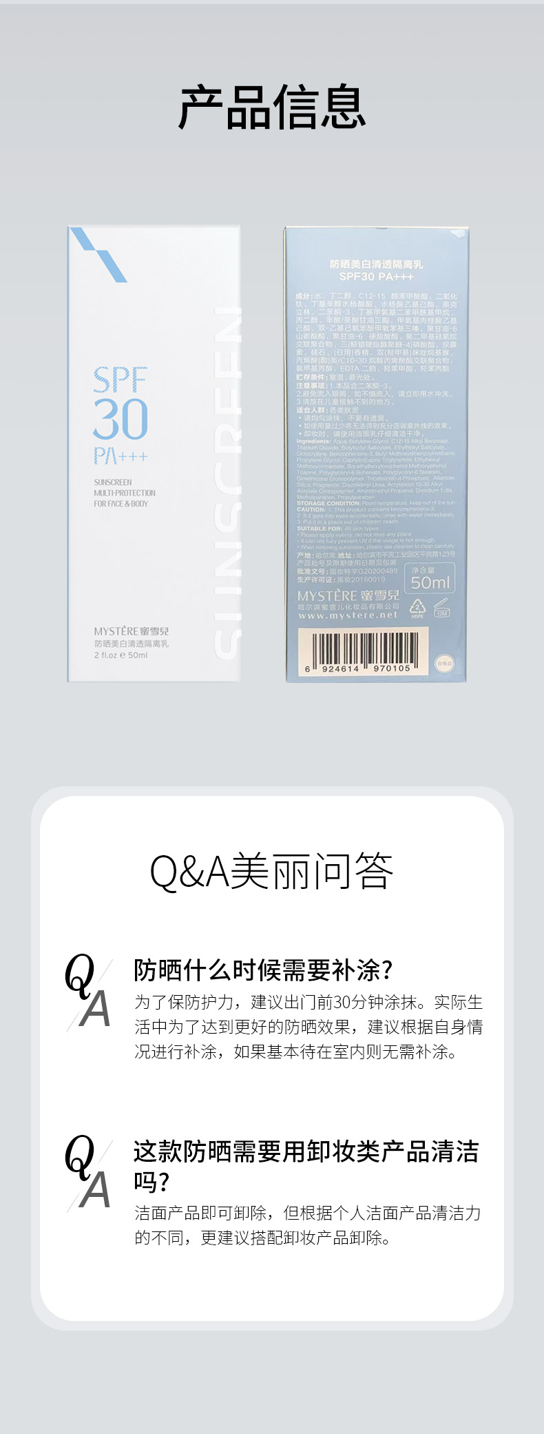 蜜雪儿防晒美白清透隔离乳SPF40/SPF30 PA+++