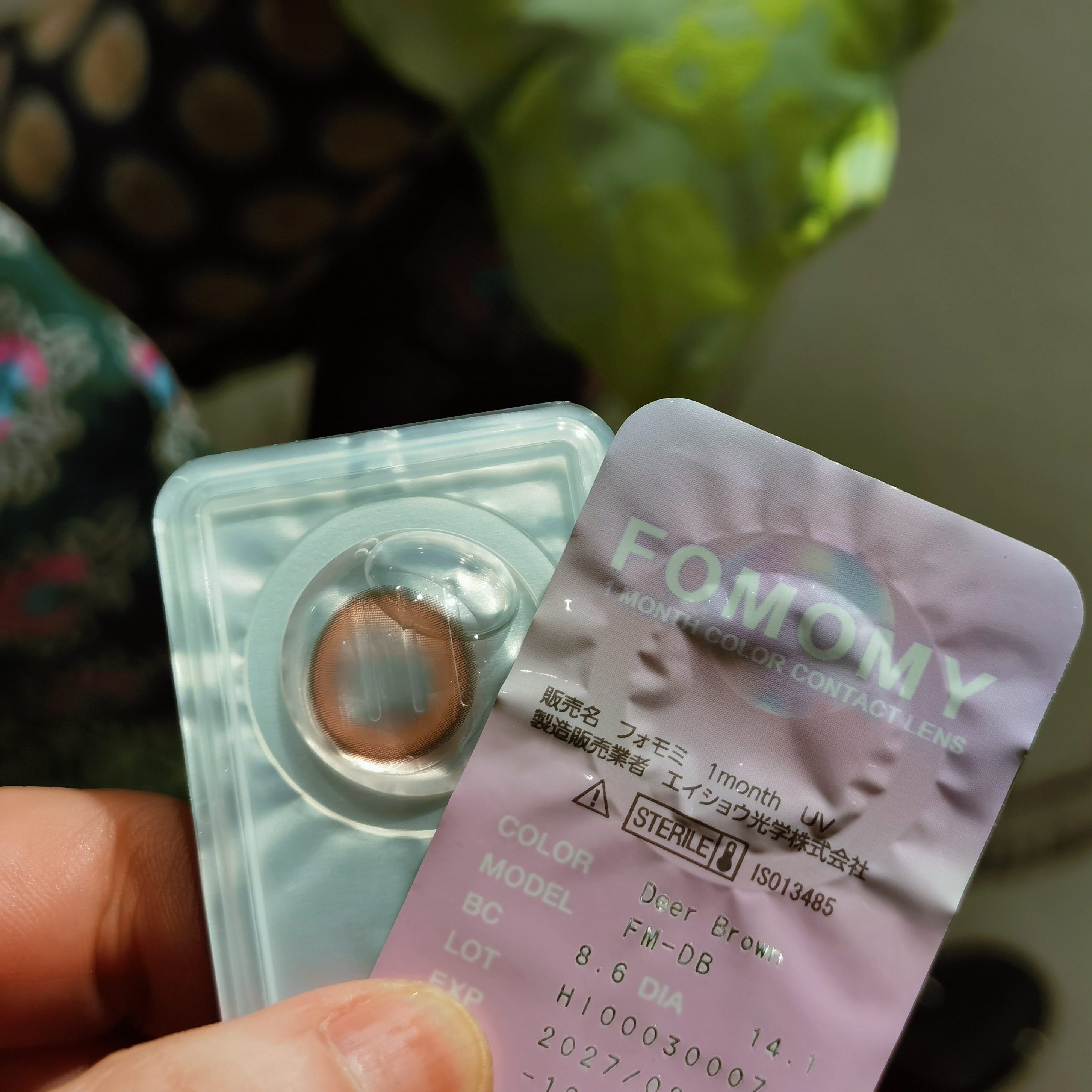 之所以那么喜欢FOMOMY,除了颜色好看外,它的度数是0-1000度,是为数不多能考虑到像我这样深度大近视的美瞳了!日抛一盒是1片,如果两只眼度数不同就买两盒。月抛比日抛会更好戴一些,因为镜片含水度不同,相对比较挺立,对新手很友好!