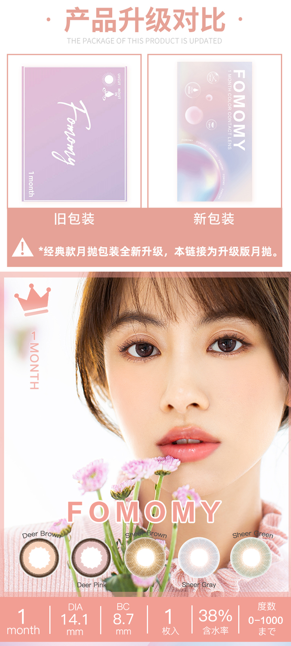 日本FOMOMY坠坠坠经典款的月抛升级啦!是在品牌全新的生产线上诞生的,相比老款,上眼效果更自然,佩戴也更舒适,非常值得入,新手也可以试试!