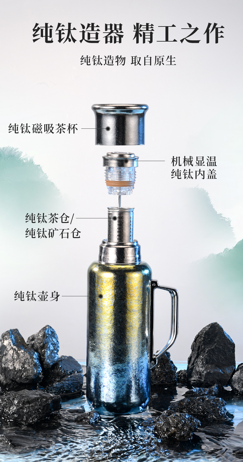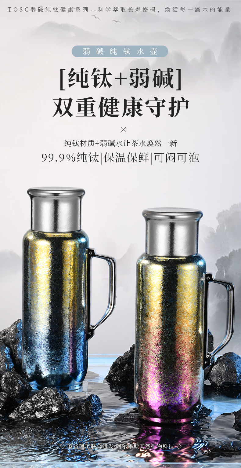 英国TOSC特可纯钛99.9%弱碱钛壶磁吸焖泡茶养生杯大容量1L