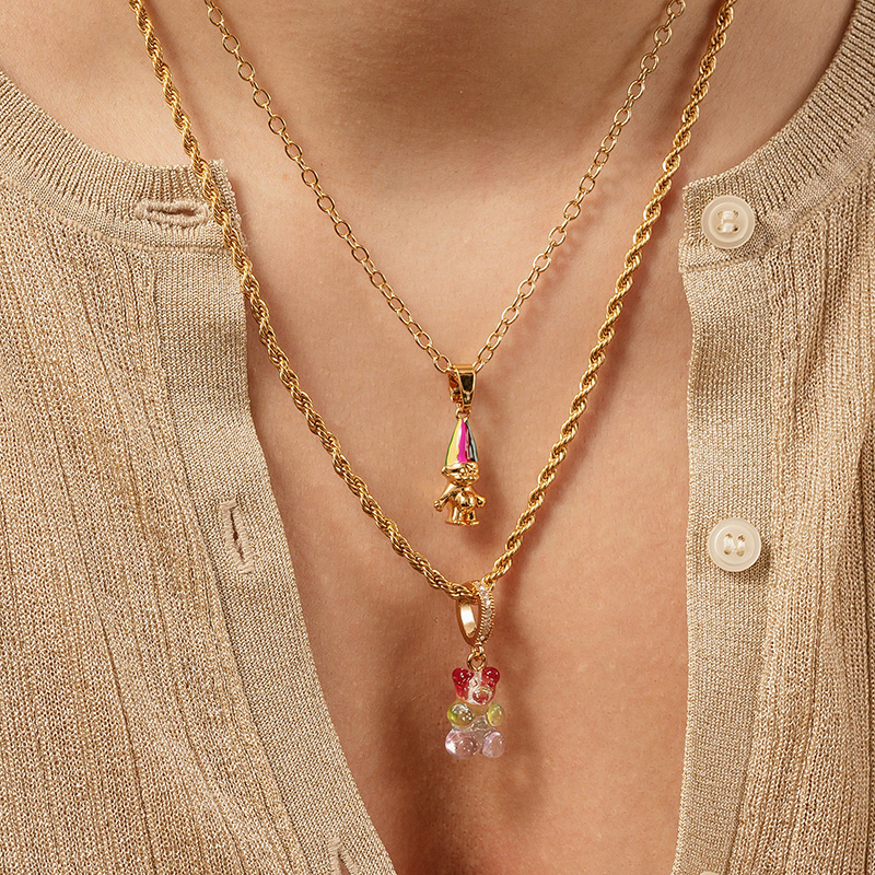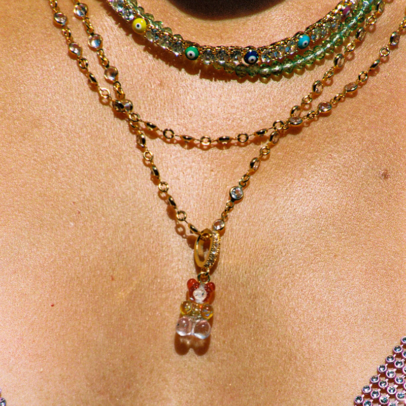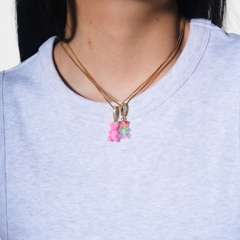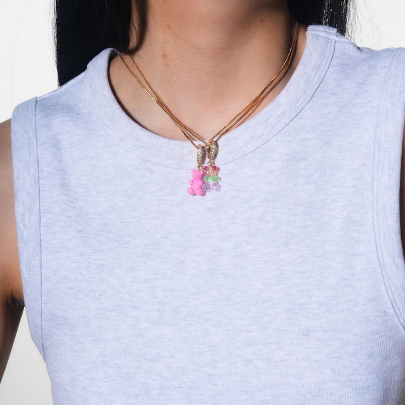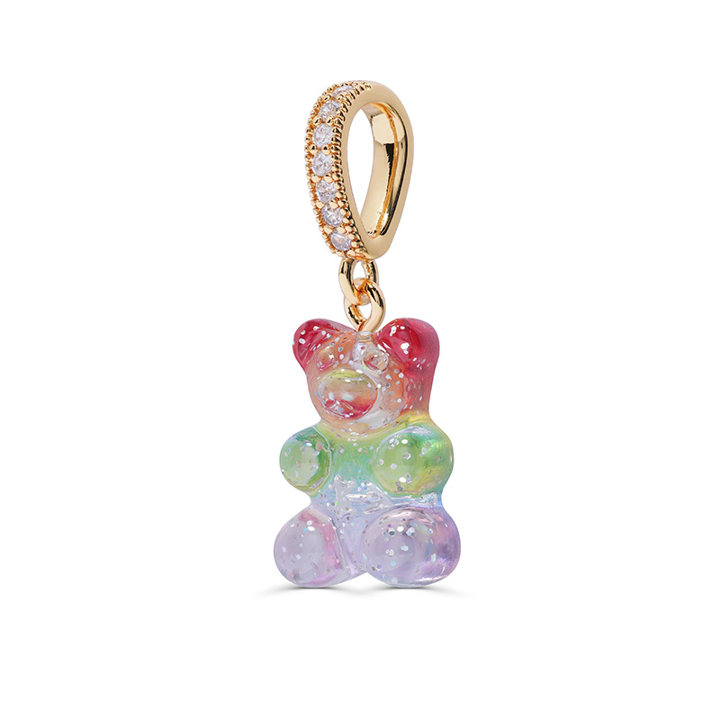 北京仓|CRYSTAL HAZE-Nostalgia Bear-pave-彩虹小熊 吊坠(金色环扣)[挪威设计师]