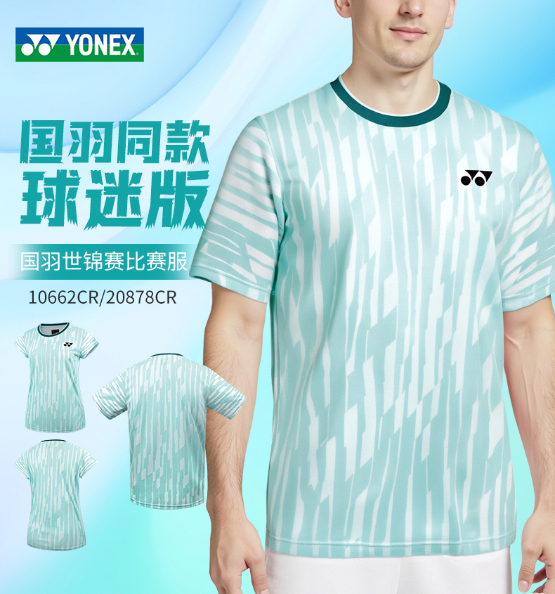 YONEX尤尼克斯羽毛球服短袖10662CR 20878CR男女款国羽世锦赛大赛服短袖