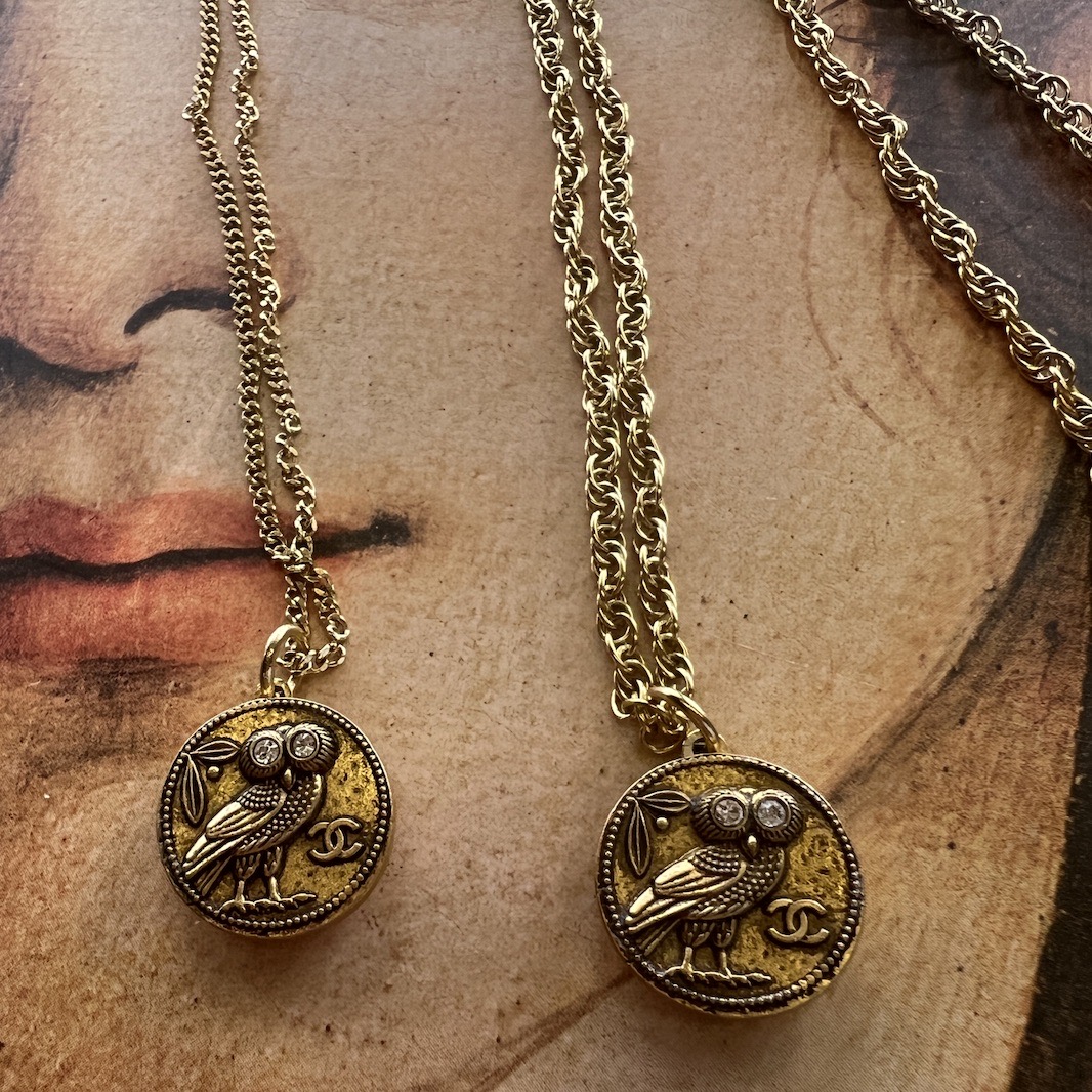 北京仓|Gigi Paris-金色猫头鹰 双C Logo-Vintage纽扣 细链 项链[法国设计师]