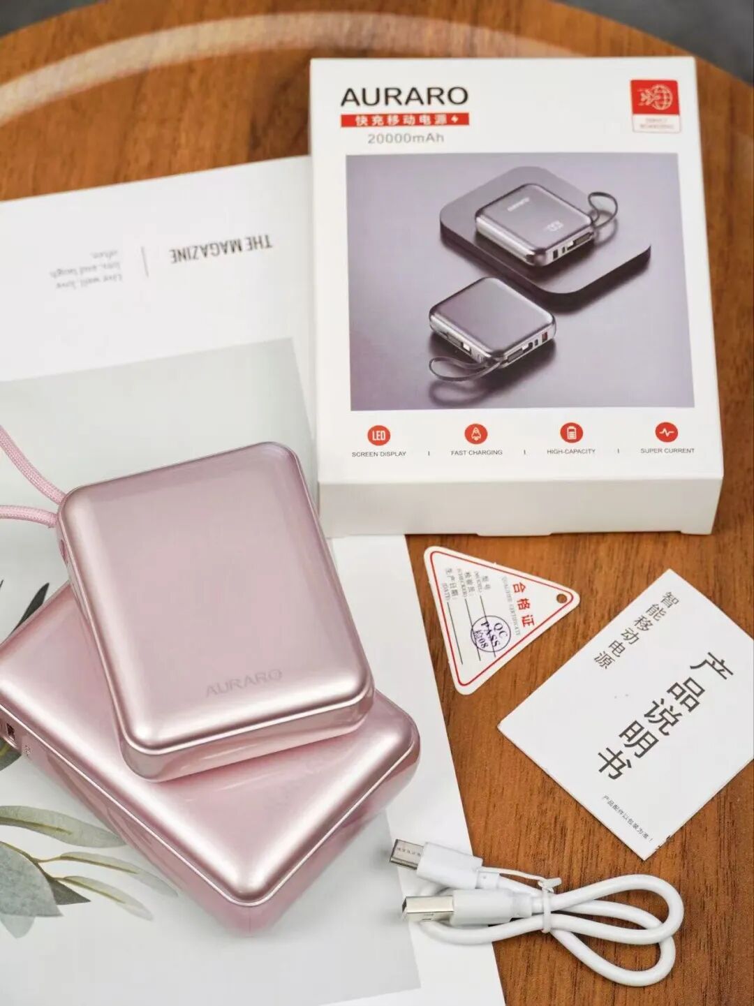 AURARO镜面超级快充移动电源 | 航空品质防火材质,22.5W快充,枪灰色/玫瑰金色可选(台风影响,3-5天发货)