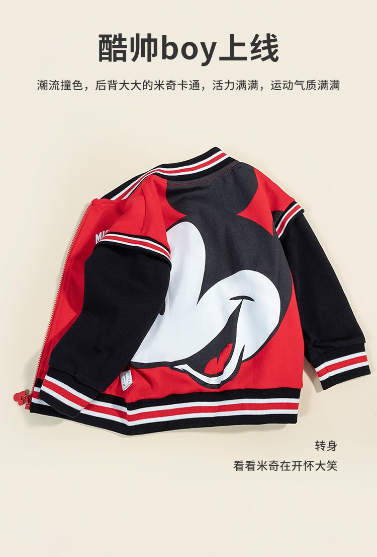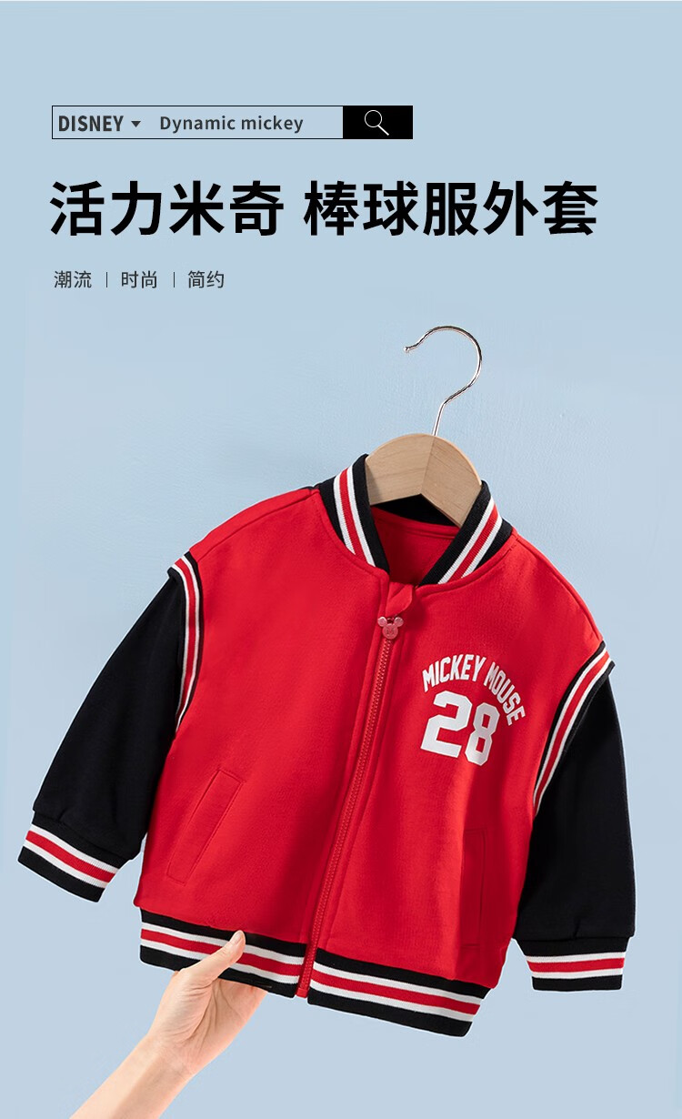 【商场同款】迪士尼童装男童棒球服活力米奇时尚红色春秋外套