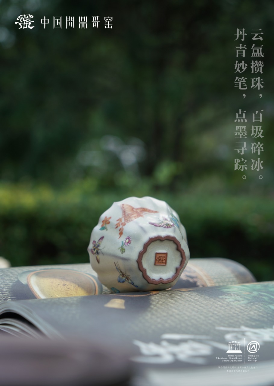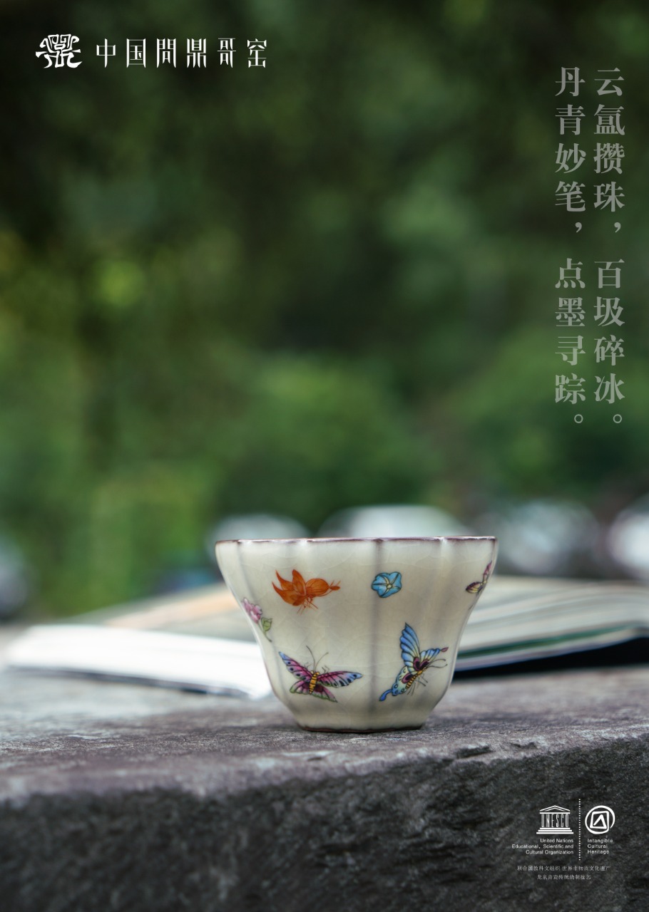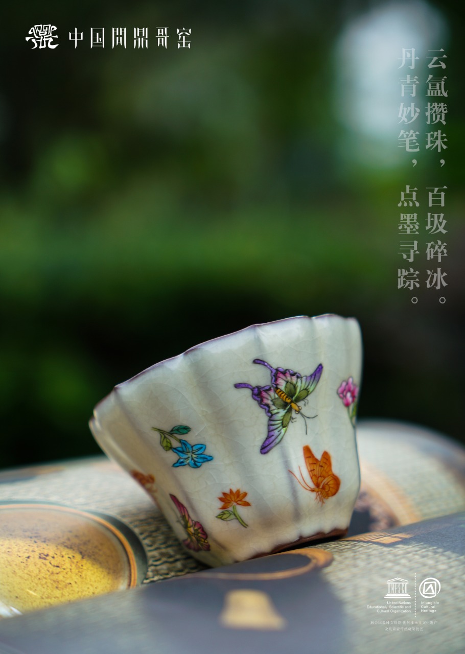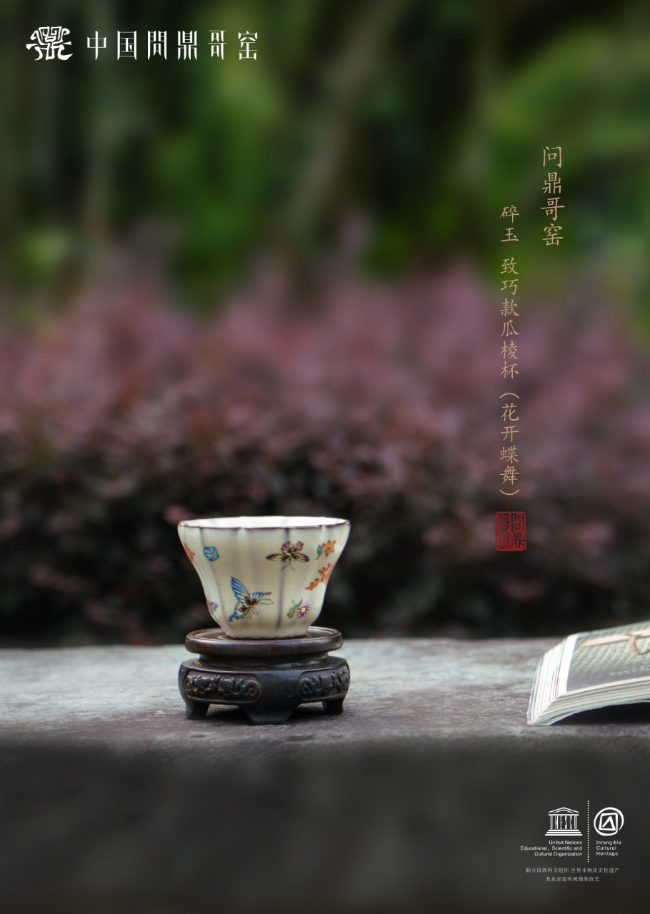 问鼎哥窑致巧款瓜棱杯(花开蝶舞)(缺货)
