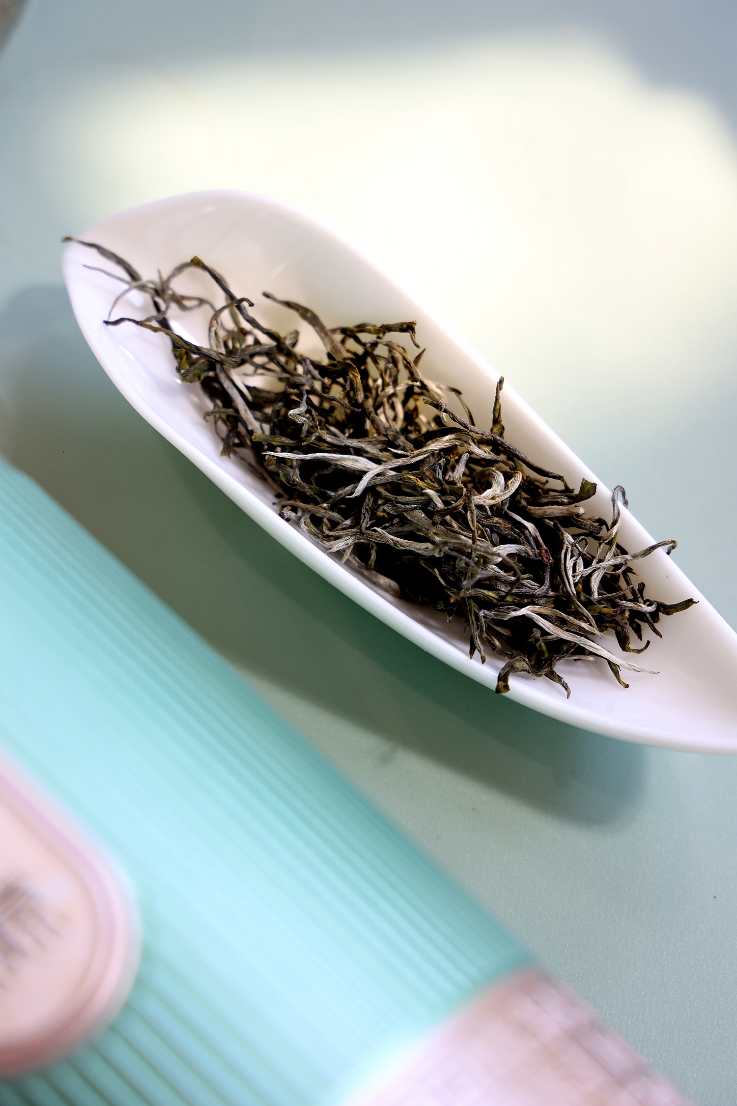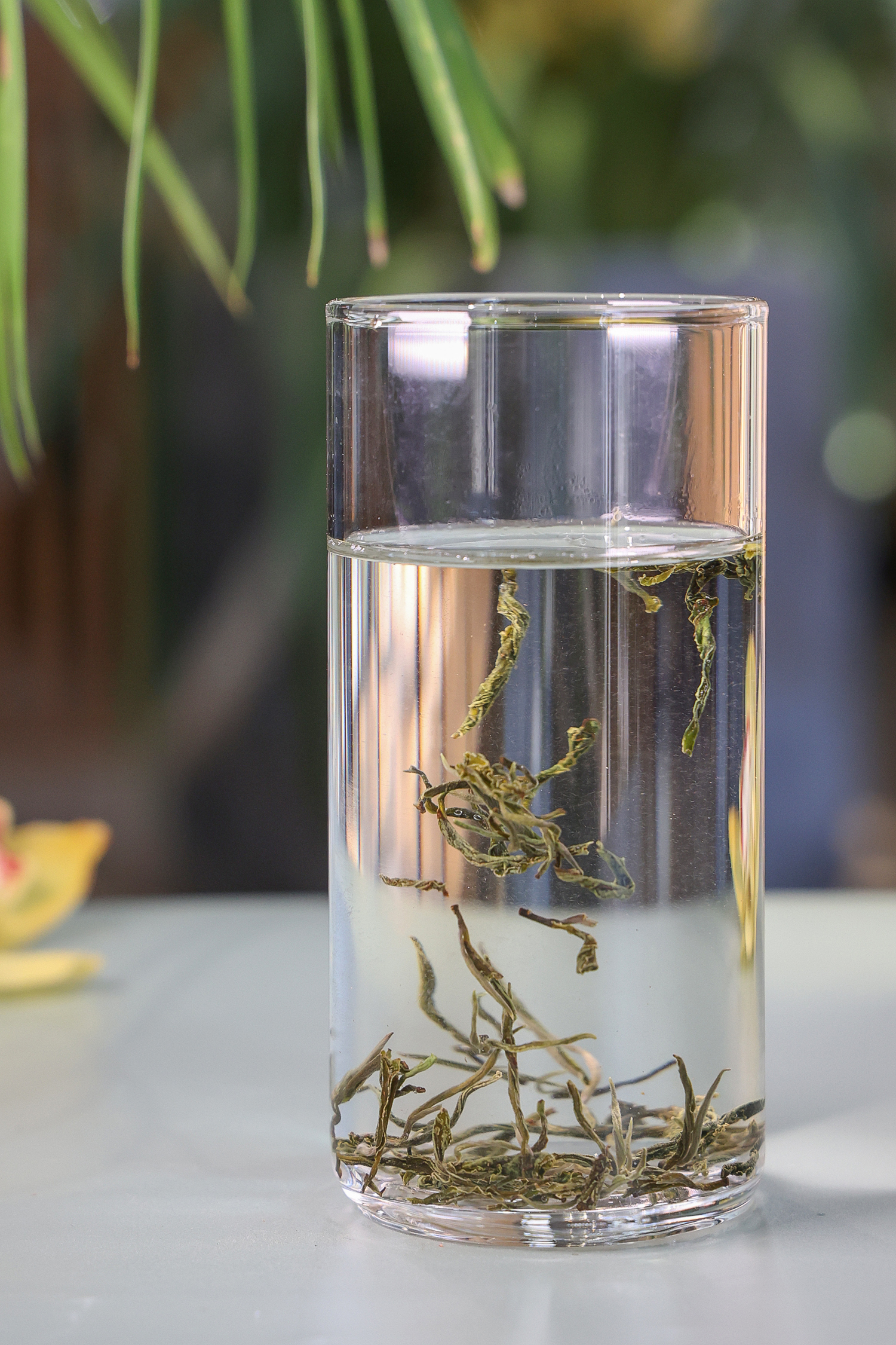 鲜叶芽尖显露,芽头肥壮,白毫带绿