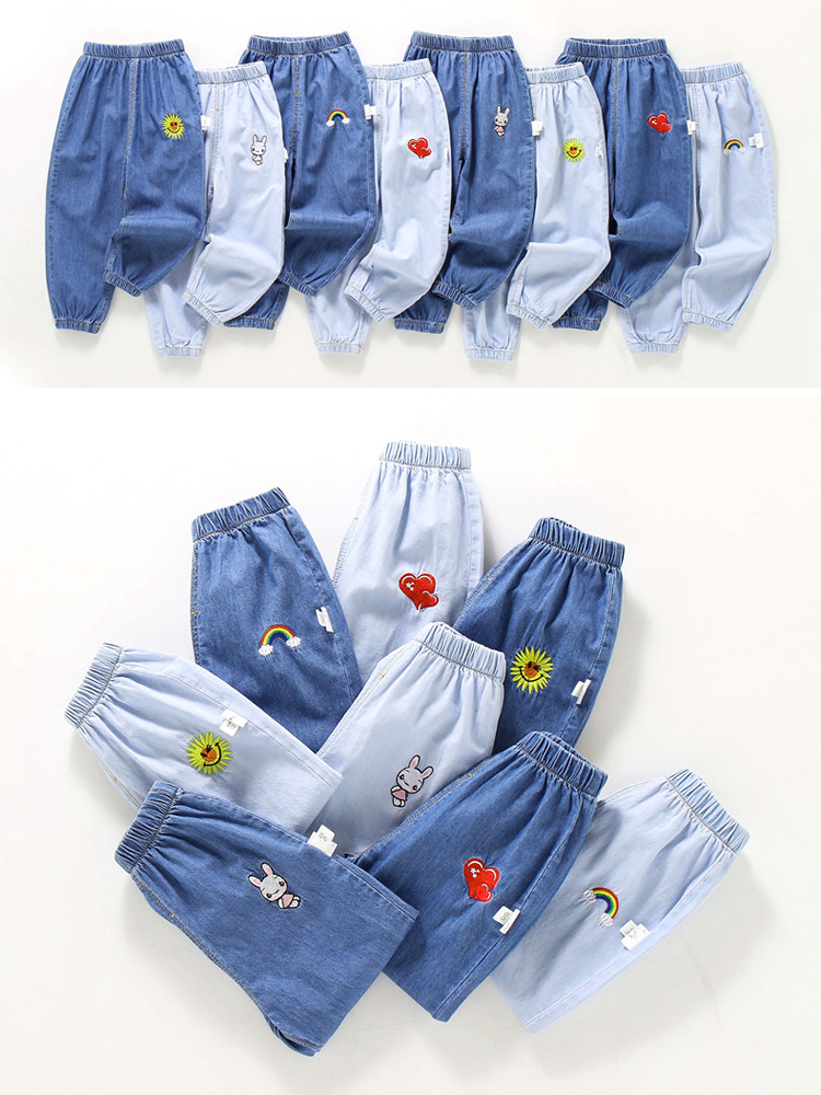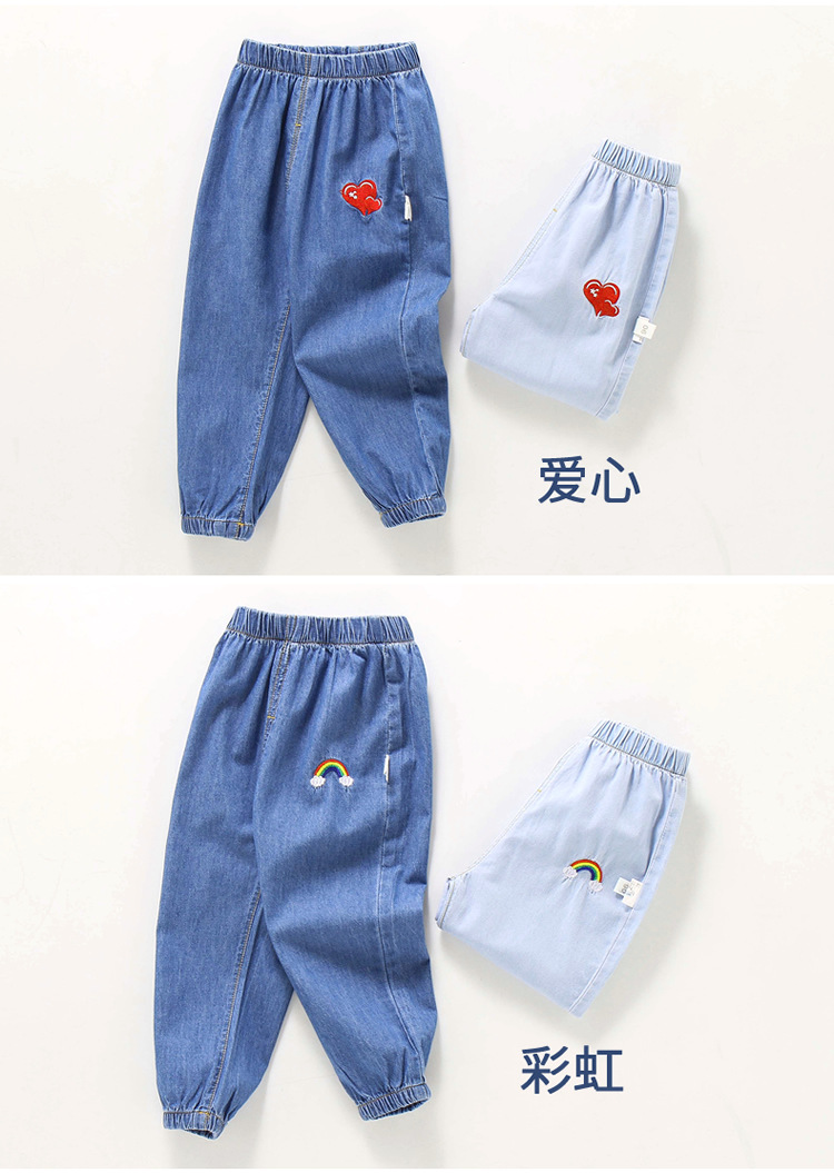 【轻薄透气 纯棉呵护】儿童牛仔防蚊裤夏季薄款男童灯笼裤小童宝宝防蚊裤女童绣花防蚊裤