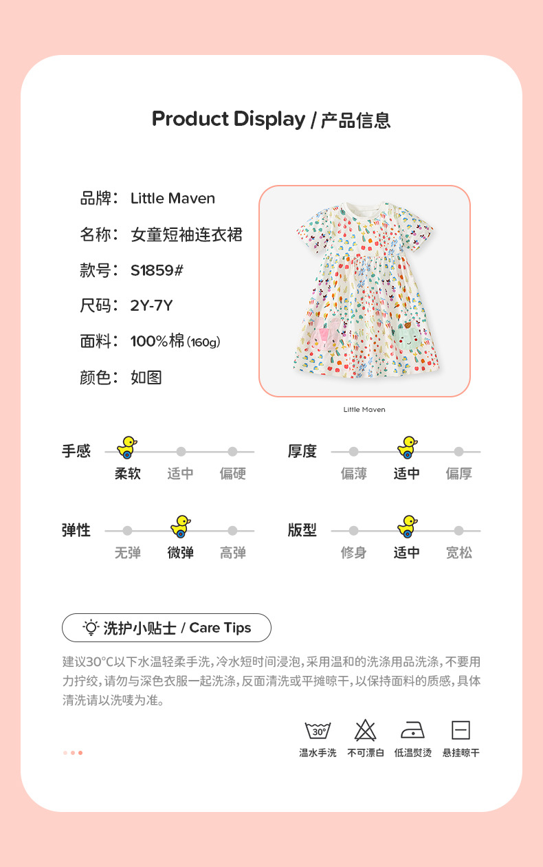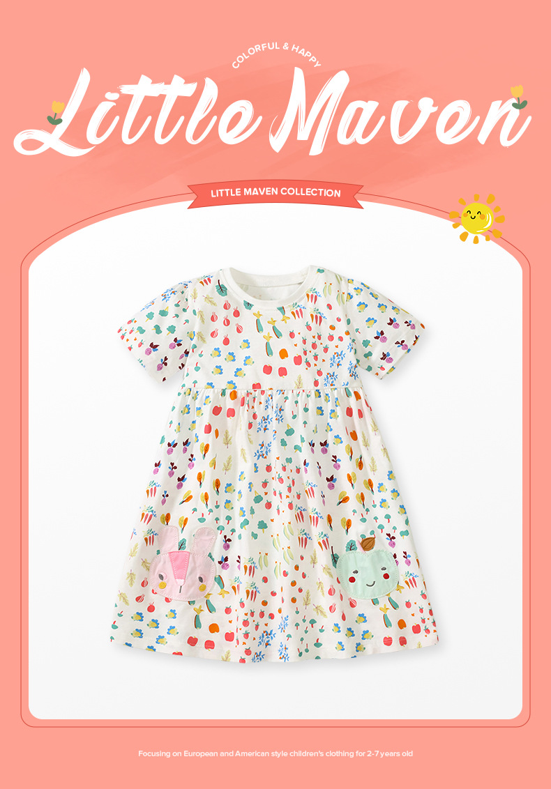 【可爱碎花公主裙】 Little maven欧美卡通碎花童裙夏款女童公主裙短袖纯棉 儿童连衣裙