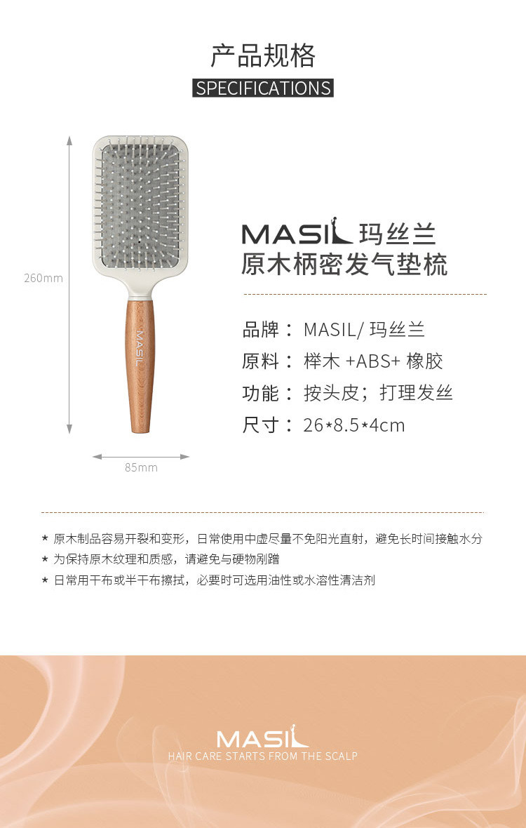 【一般贸易进口】韩国MASIL玛丝兰密发气垫梳26*8.5*4cm