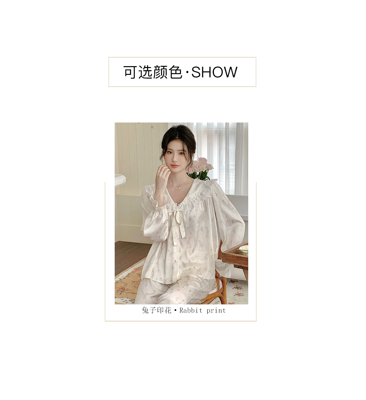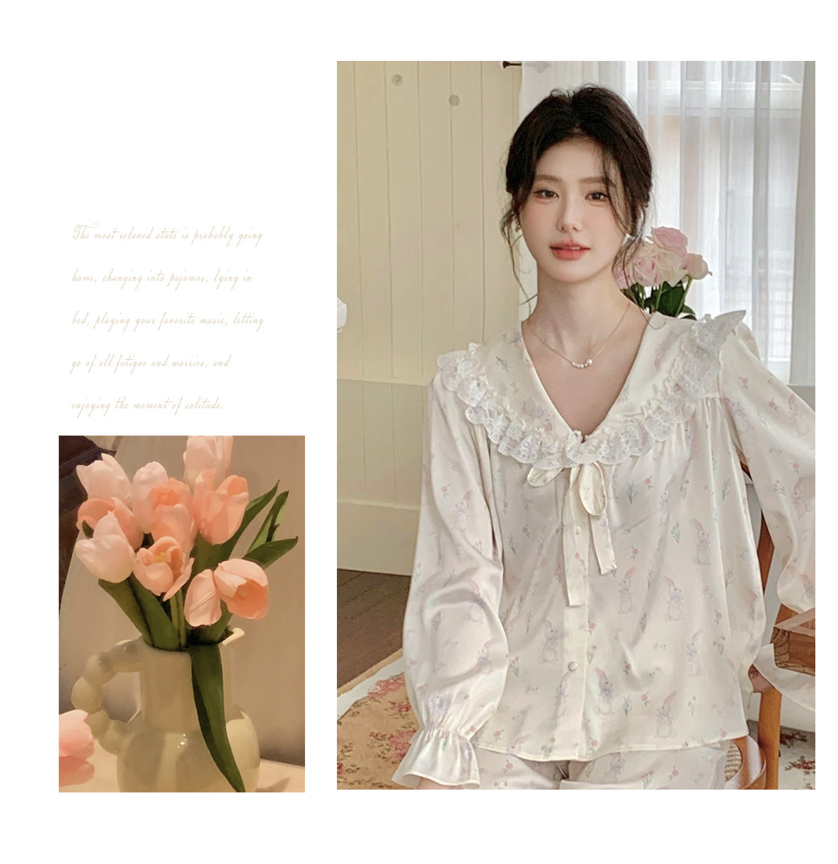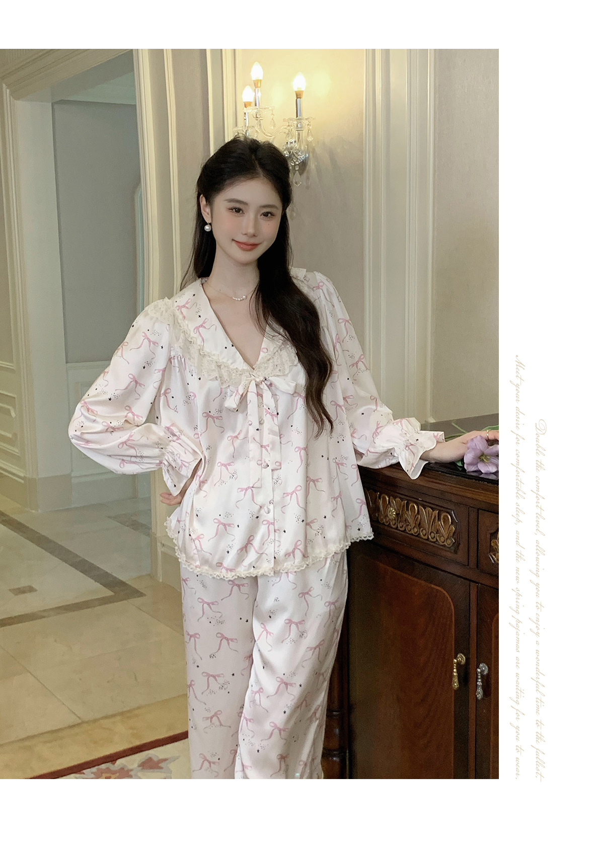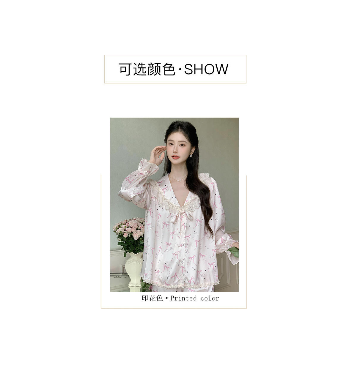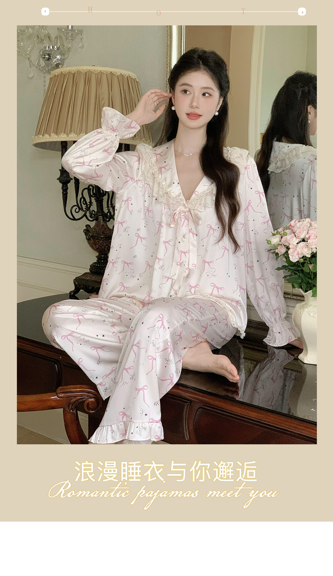 【秋冬严选!甜美公主风冰丝套装】法式睡衣女士长袖长裤秋季睡裤家居服可外穿