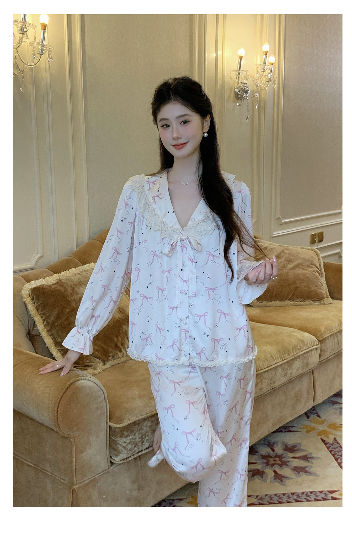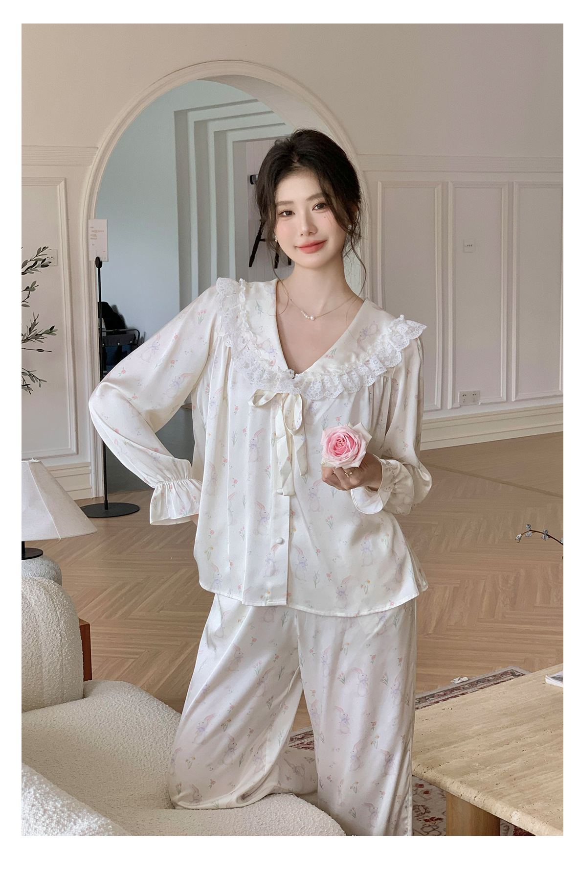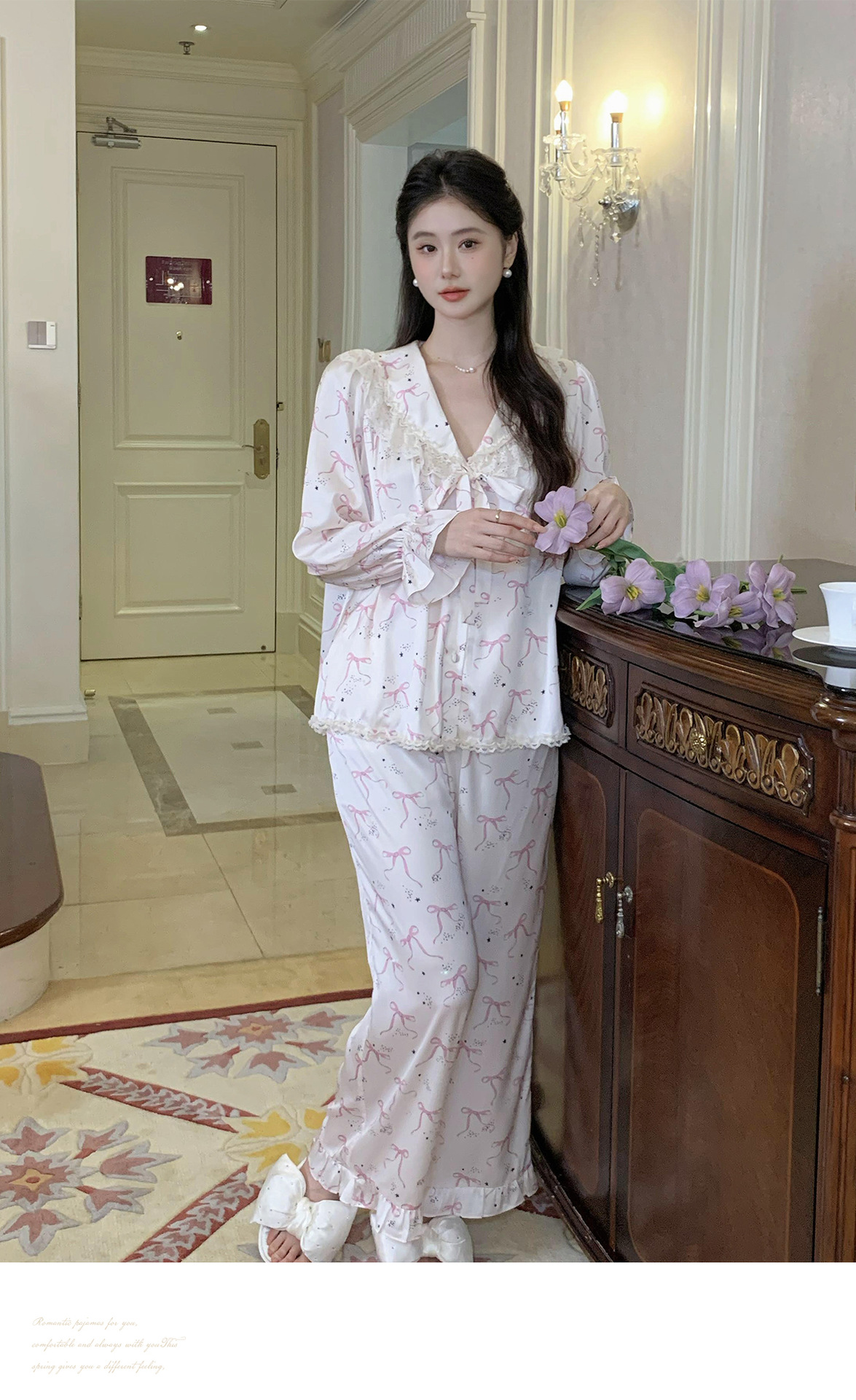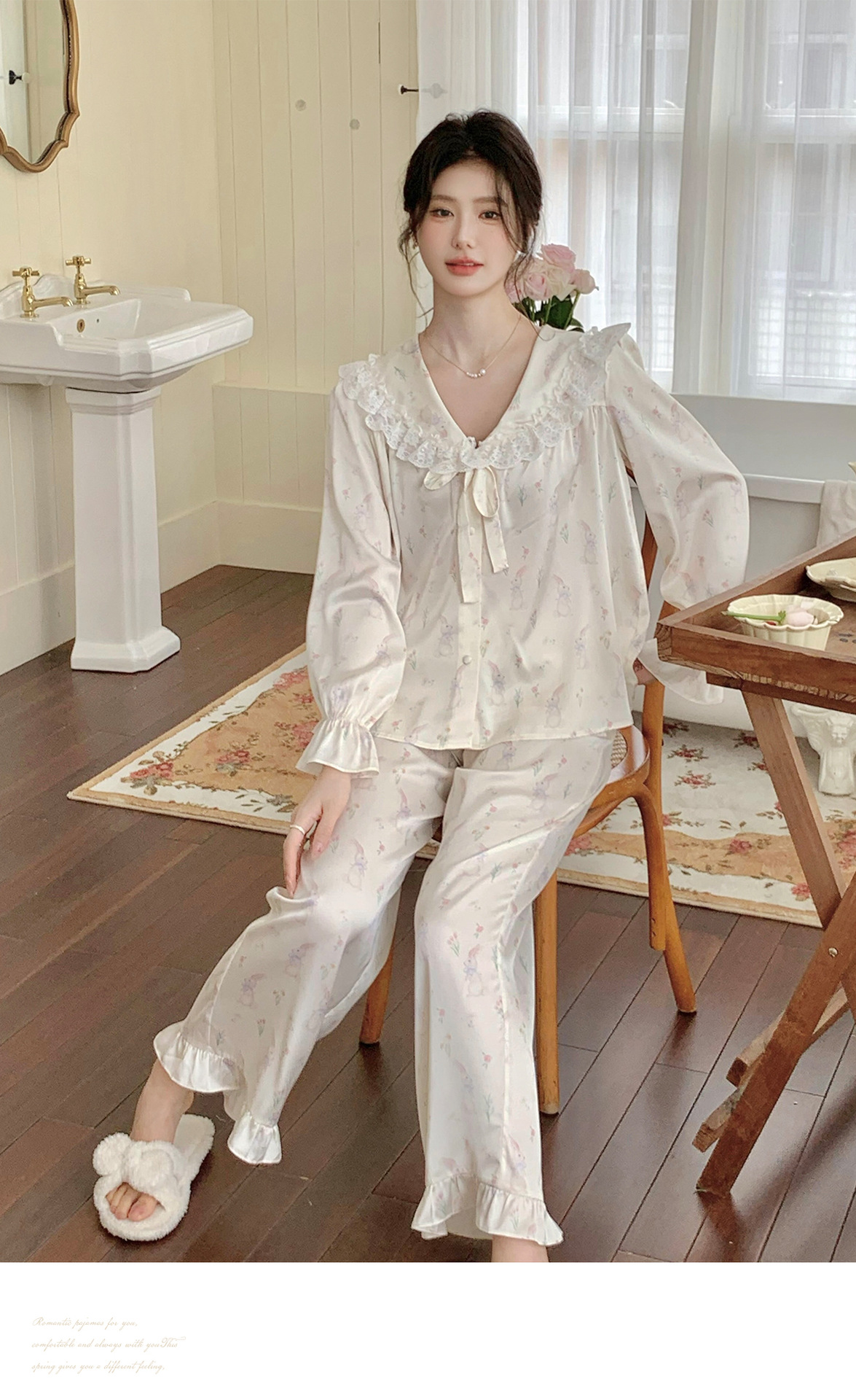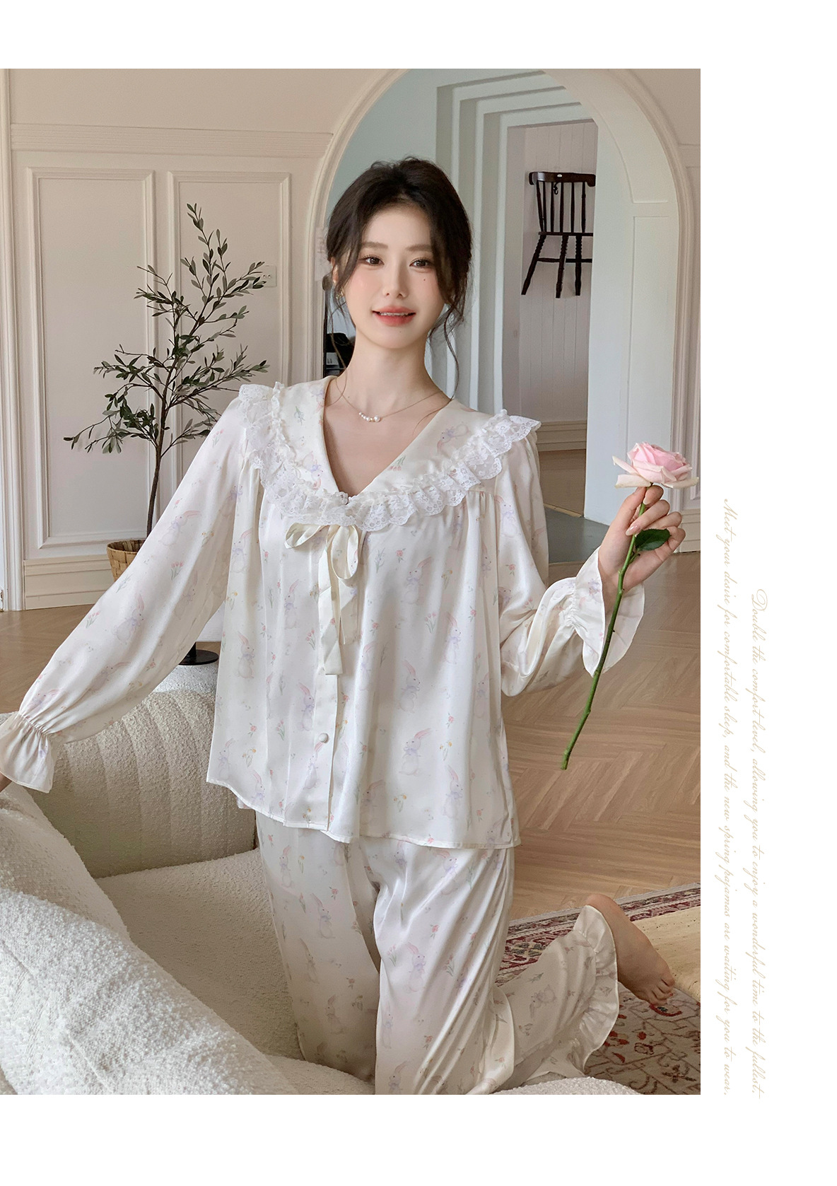 【秋冬严选!甜美公主风冰丝套装】法式睡衣女士长袖长裤秋季睡裤家居服可外穿