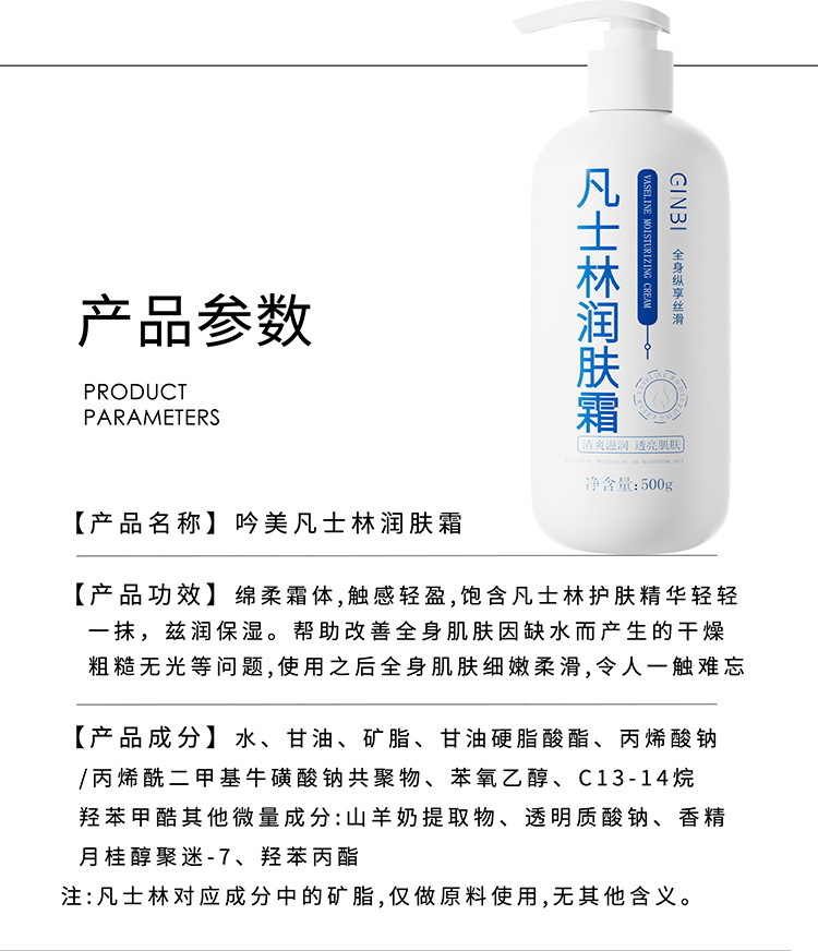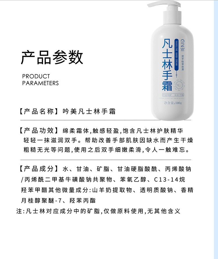 【29.9抢2瓶!添加“凡士林”成分润肤霜护手霜】抹一次水润一整天,养出少女“漫画手”!滋养秋冬防干燥常备,水润嫩白提亮肤色,清爽不油腻,添加“凡士林”成分护手霜500ml/瓶