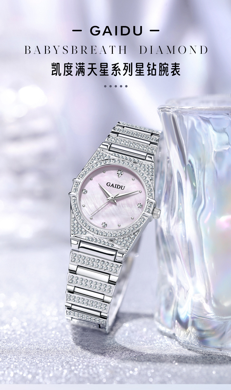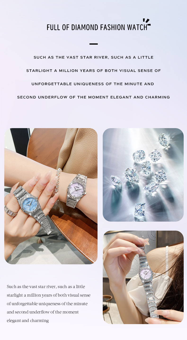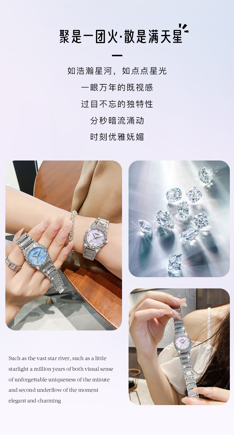 【众星揽月❗️满天星星钻腕表】超薄防水夜光贝母腕表,耐磨防刮花,清晰透亮,熠熠生辉,全面保护时尚轻奢满钻钢带石英女表QQ情人节礼物男女朋友