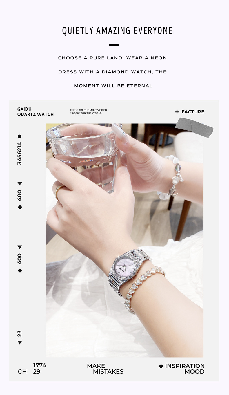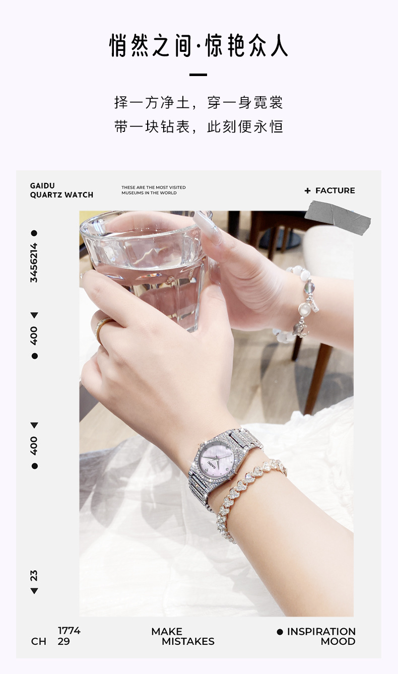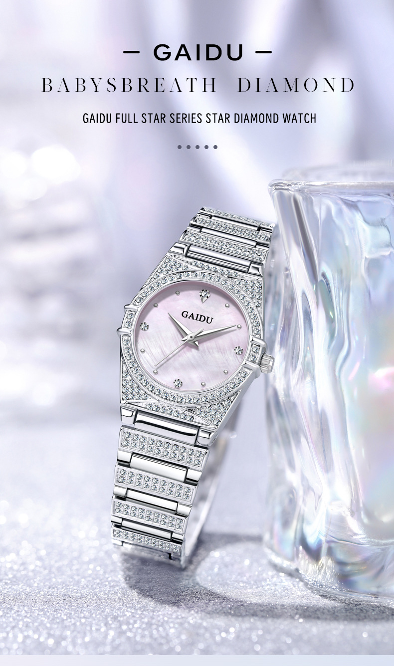 【众星揽月❗️满天星星钻腕表】超薄防水夜光贝母腕表,耐磨防刮花,清晰透亮,熠熠生辉,全面保护时尚轻奢满钻钢带石英女表QQ情人节礼物男女朋友