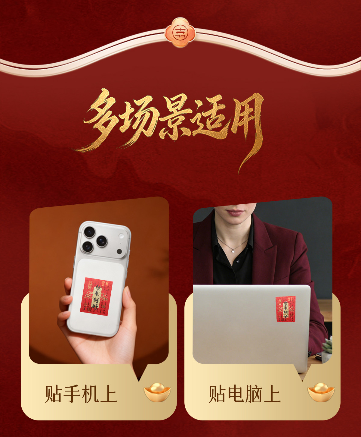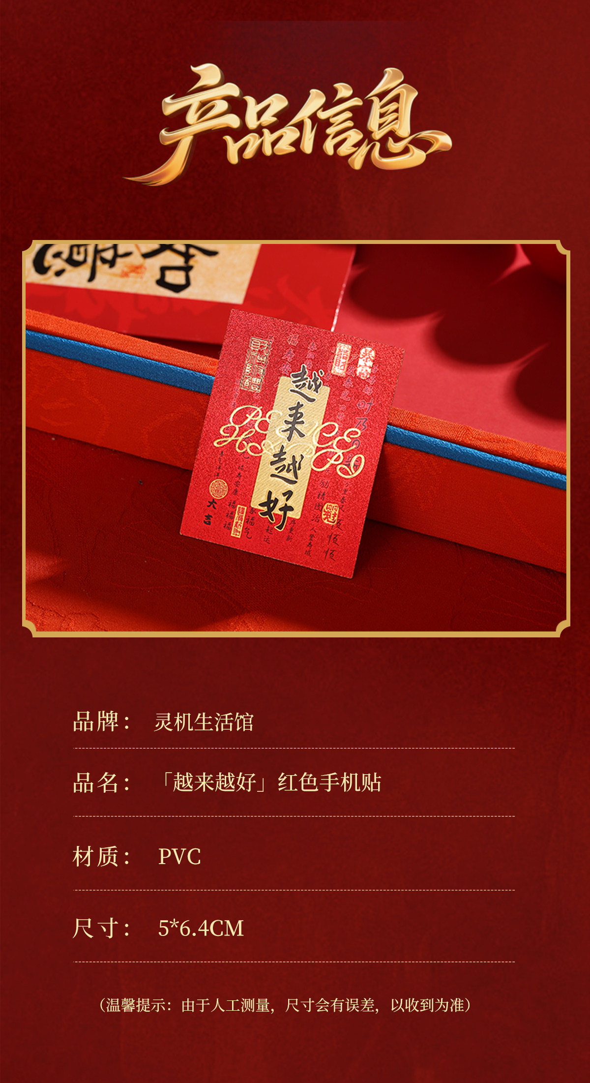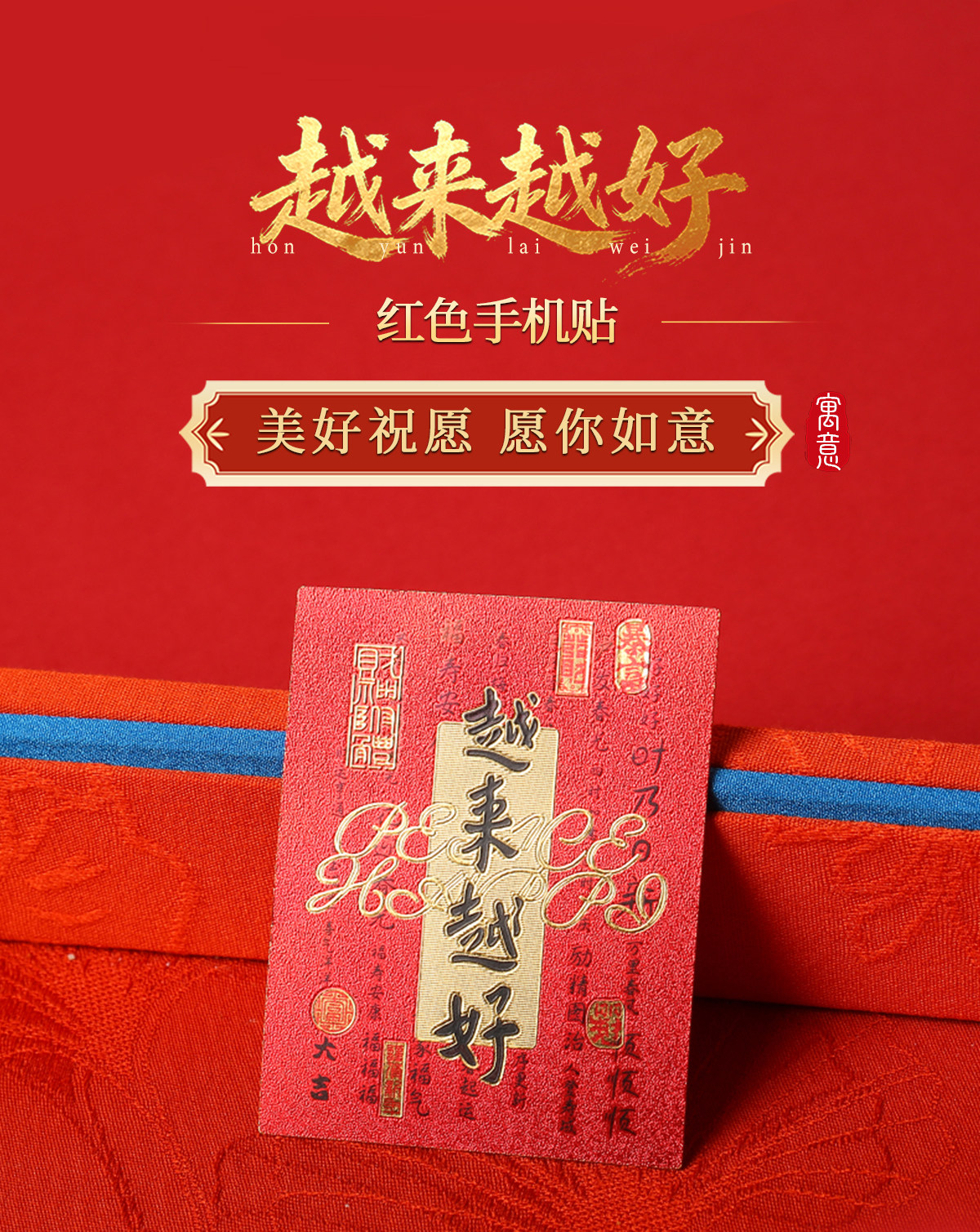 【祈愿吉品】「越来越好」红色手机贴幸运物招米财神贴纸