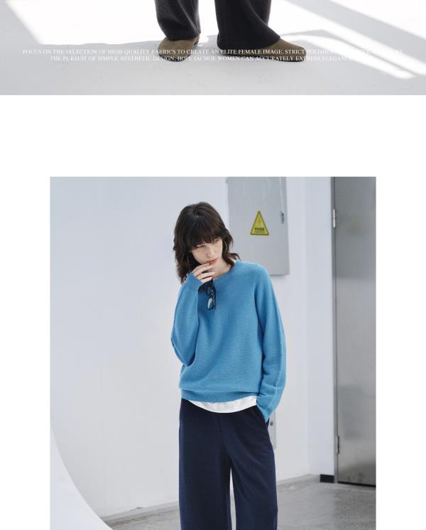 棉仓356801009-水波纹微宽松圆领长袖T恤