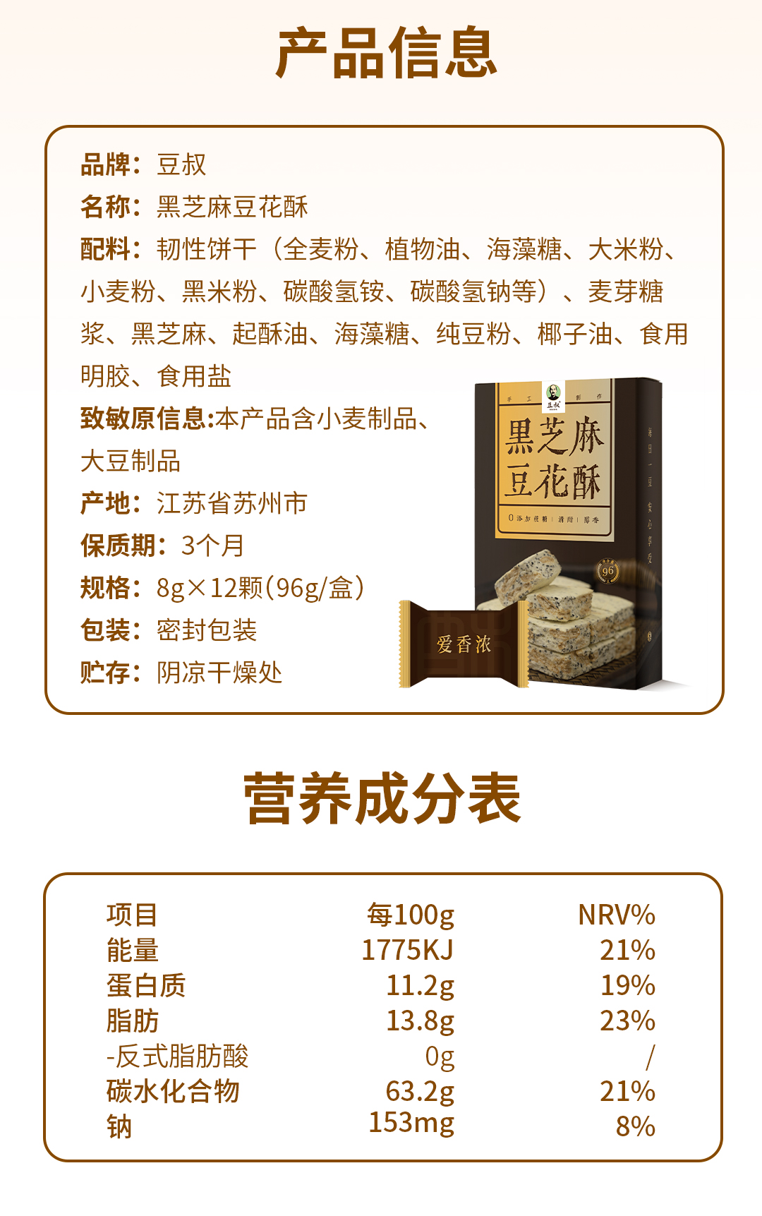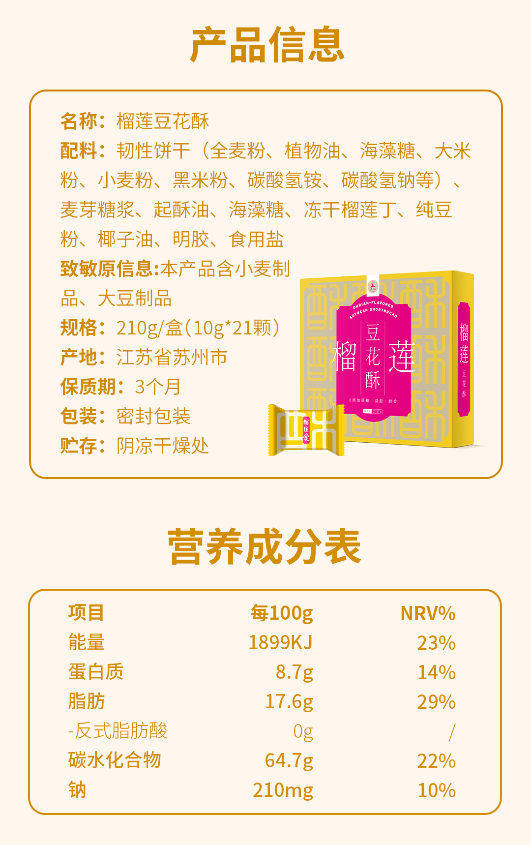 【品名】豆叔豆花酥 【规格】 规格①:原味豆花酥11g*21颗/盒, 规格②:榴莲豆花酥10g*21颗/盒, 规格③:黑芝麻豆花酥8g*12颗/盒,