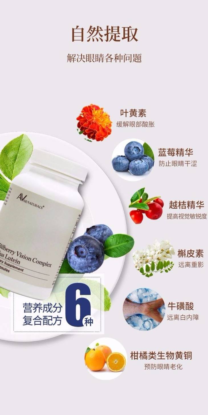618【保税区】【电脑不再闪瞎眼】美国AV蓝莓护眼精华叶黄素专利儿童近视蓝莓护眼越橘保护视力胶囊