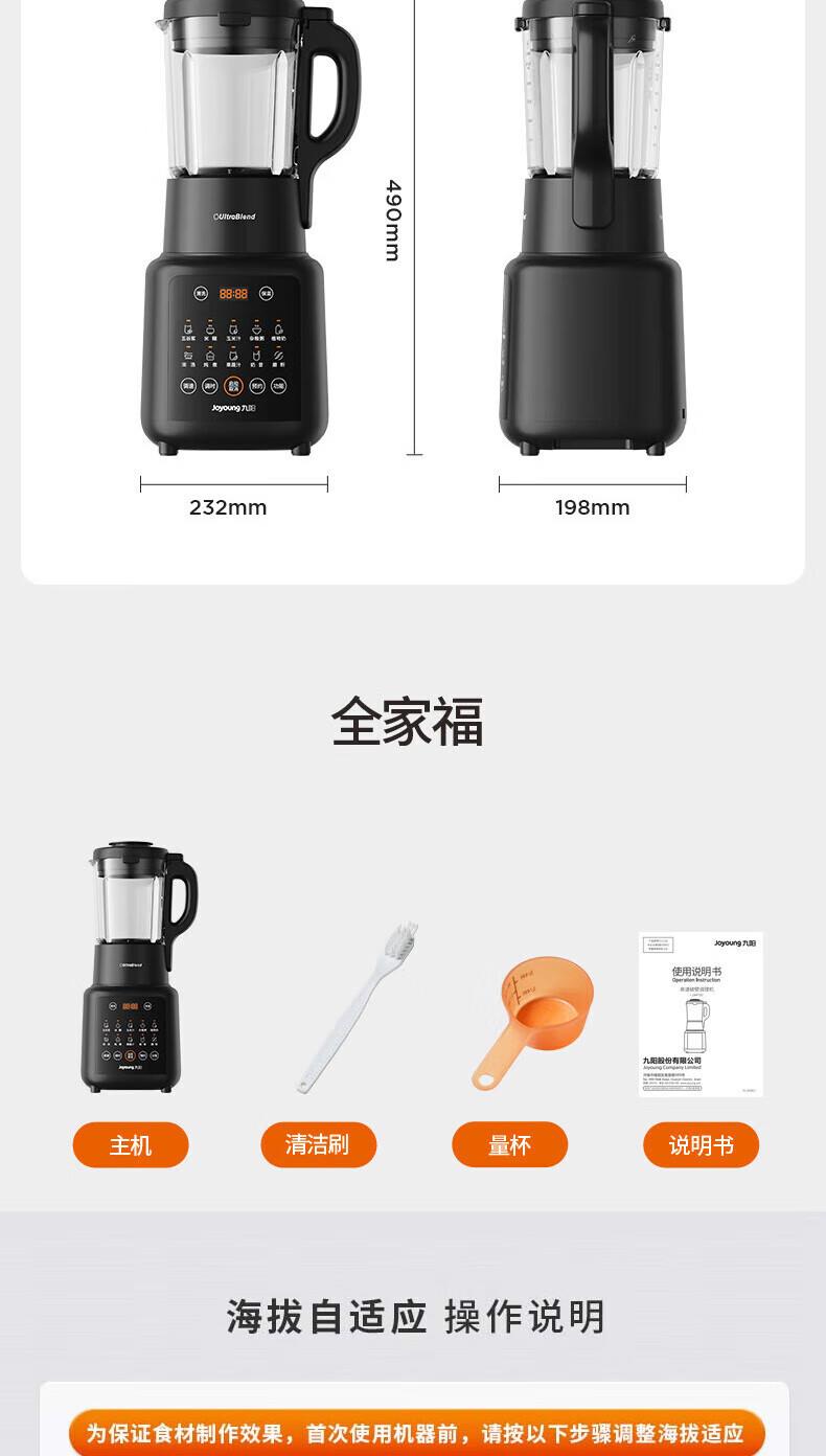 九阳破壁机家用豆浆机多功能榨汁料理机全自动加热大容量辅食机